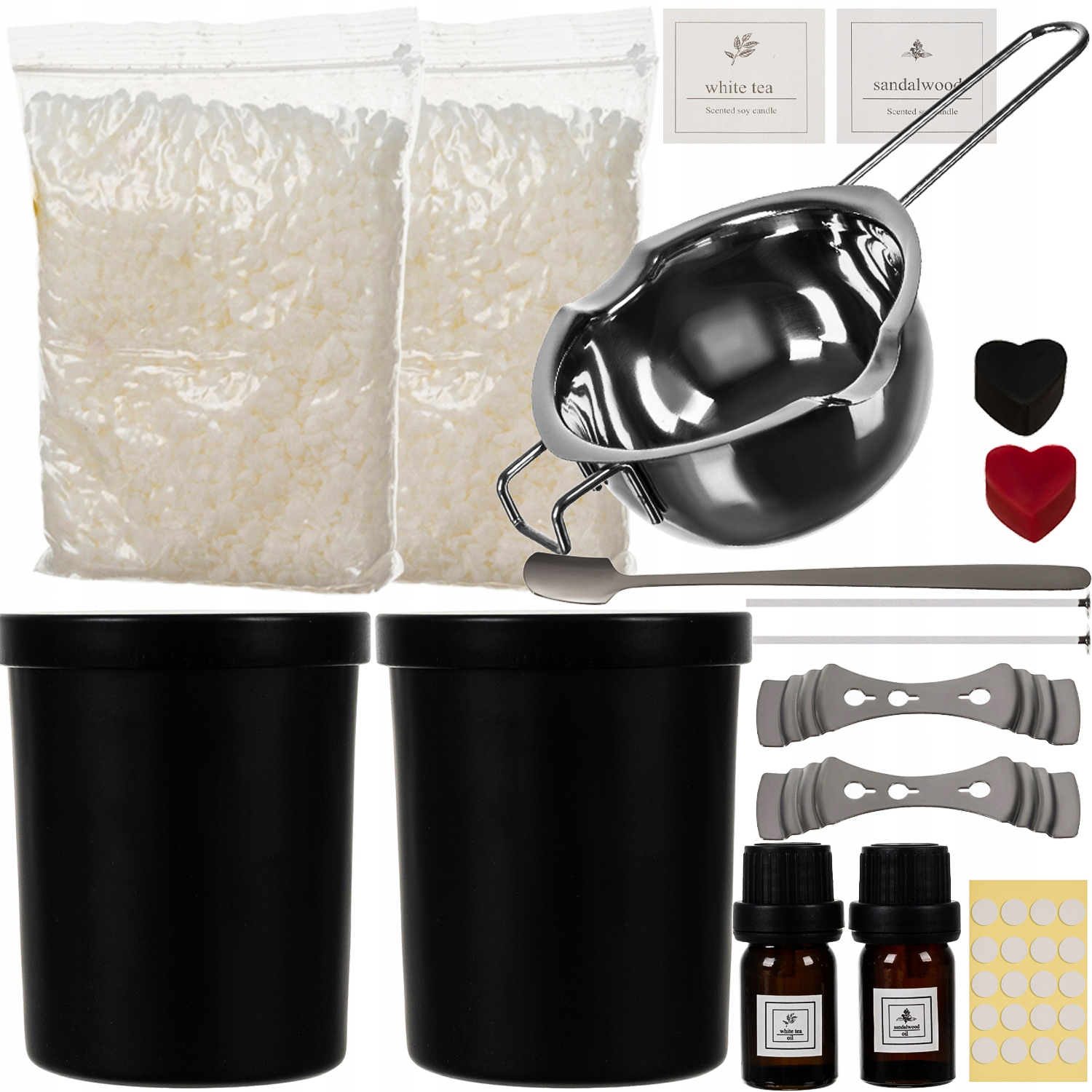 - 36 Вт 1 - цей великий набір налічує аж 36 елементів. Це дозволяє створити 2 повні свічки. У набір входить: 2 х багаторазові банки з кришками; 2 наклейки для баночок; 2x парфумовані масла; 2x бавовняні ґноти; 2x воскові мішки; 2x воскоміси; 1x воскотопка; 1х чайна ложка; 20 наклейок з круглим ґнотом; 2x барвник.