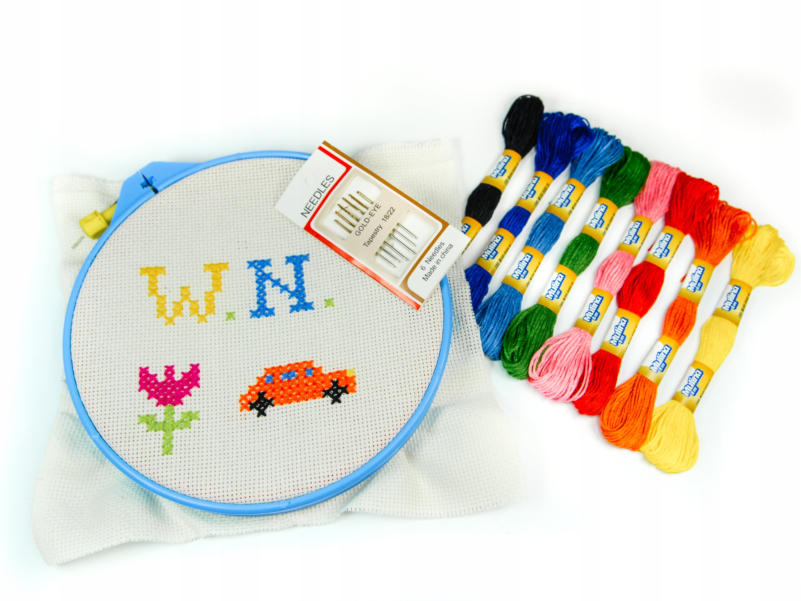 НАБІР ДЛЯ ВИШИВАННЯ ДИТЯЧИЙ - п'яльця для вишивання, канва, нитки, голки та ШАБЛОН