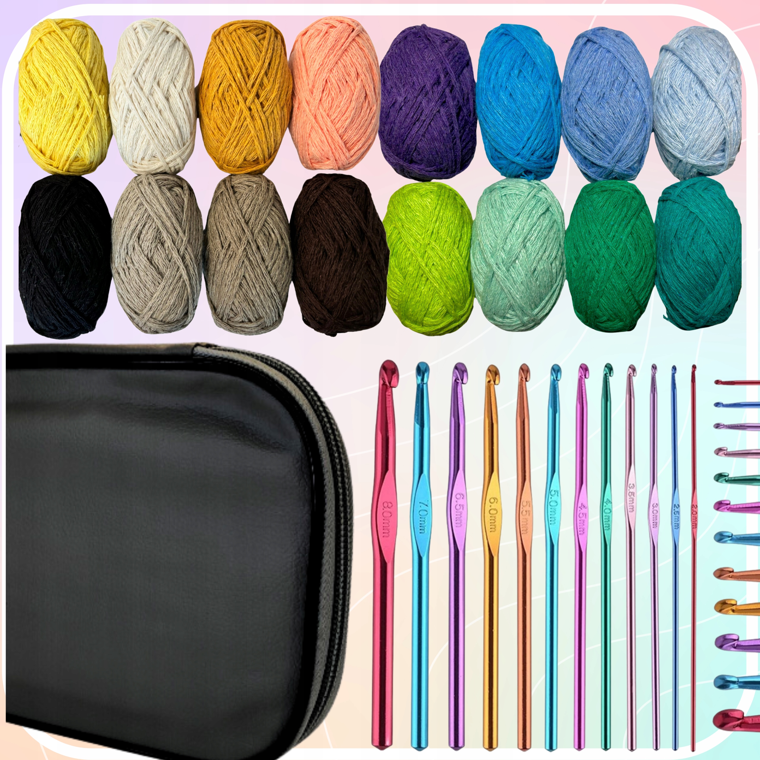 НАБІР ДЛЯ В'ЯЗАННЯ ГАЧКОМ У ФУТЛЯРІ +16 РІВНИХ НИТОК 100% БАВОВНА