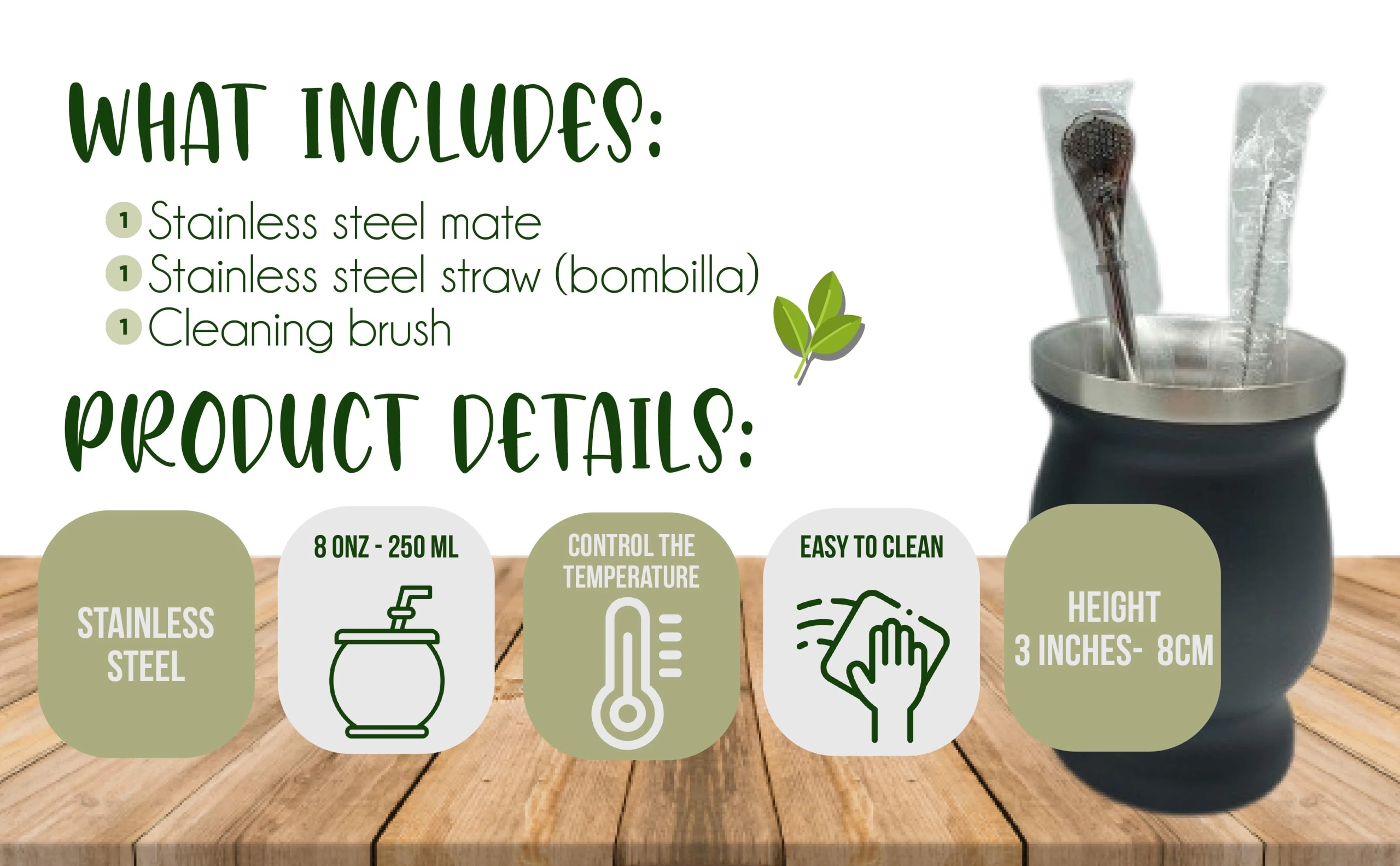 ✅Багатоцільовий Ця Yerba Чашка для мате виготовлена з високоякісної нержавіючої сталі 304 і вміщує до 8 унцій мате, підходить для гарячої води, соків, смузі, напоїв і може використовуватися багаторазово протягом тривалого часу