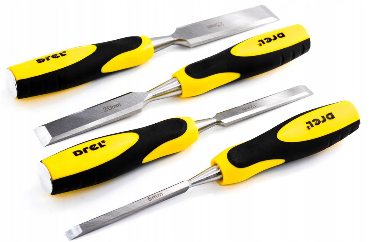 Набір деревних зубил, що складається з 4 елементів. Ядро індивідуальних інструментів виготовляється з сталі хрому-ванадію. Ця сталь має ряд властивостей, що призведе до тривалого періоду використання набору. Перш за все, він стійкий до корозії та стирання. Зиізи також оснащені зручною ергономічною ручкою , що забезпечує комфорт роботи та дозволяє легко керувати інструментом. Суцільна ручка стійка до удару, а додатково закінчена металевою стрічкою. Курячі зубили будуть використовуватися для обробки різних видів деревини - ви можете успішно використовувати їх під час роботи в домашній майстерні або на професійному столярному заводі.