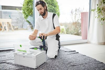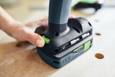 - Оптимальне освітлення робочої зони додатковими світлодіодними лампами (у поєднанні з батареєю Bluetooth® і керуванням через додаток Festool Work)