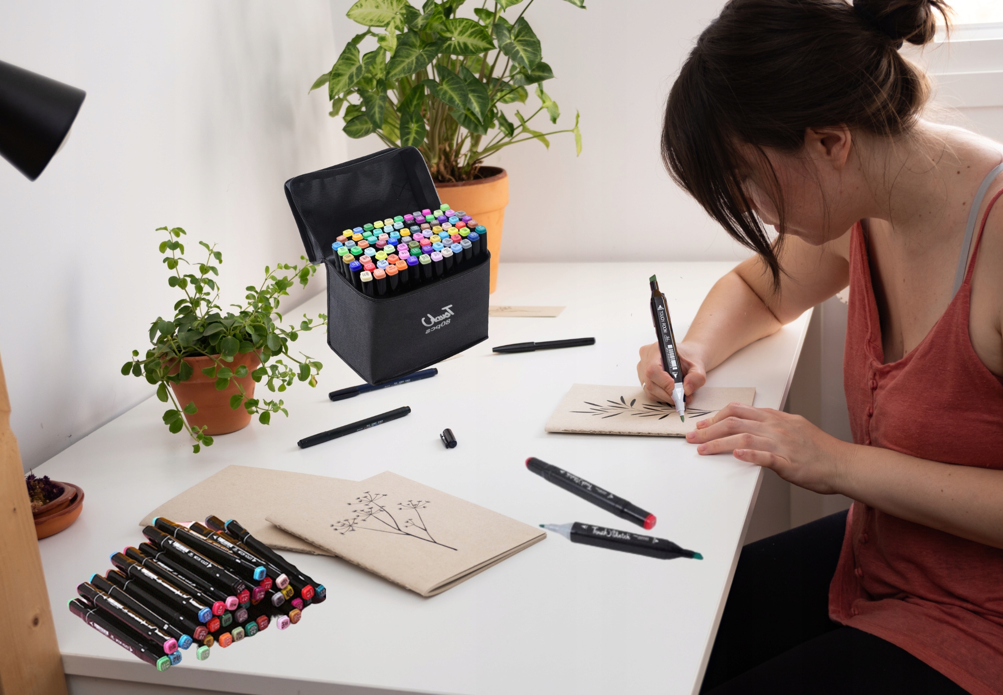 Набір 80 штук алкогольних фломастерів красивих, насичених кольорів! Ідеальна пропозиція для всіх, хто починає свою пригоду з малювання, а також для тих, хто малює щодня. Завдяки пігментації спиртових чорнил кольори легко змішуються, малюнки будуть чіткими і довго не втрачають кольору. Вони ідеальні в школі, вдома, в офісі тощо.