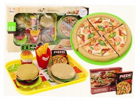 Набір фастфуду Піца Бургери Картопля Фрі Аксесуари для дітей 24 шт. Іграшковий набір для дітей, який перенесе їх у світ фаст-фуду та задоволення від ведення власного ресторану. Набір містить широкий вибір інгредієнтів, характерних для улюбленого фастфуду. Серед них піца, розділена на 4 частини, два бургери, картопля фрі, попкорн та інші смачні аксесуари. Однією з найцікавіших частин набору є можливість самостійно додавати інгредієнти до гамбургерів. Діти можуть експериментувати, створюючи унікальні смакові поєднання та розвиваючи свої творчі здібності. Крім основного посуду в набір входять і інші аксесуари, які доповнюють автентичність і атмосферу закладу швидкого харчування. Цей набір заохочує дітей розвивати свою уяву та творчі здібності, прикидаючись справжніми фаст-фудами. Вони можуть готувати замовлення, подавати страви та робити вигляд, що вони керують власним рестораном. Іграшковий набір фаст-фуд - це чудовий спосіб розвинути дитячу уяву та творчі здібності, приносячи масу задоволення та радості. Широкий вибір інгредієнтів, оригінальні аксесуари та можливість створювати власні страви дозволять кожній дитині відчути себе справжнім шеф-кухарем в улюбленому ресторані швидкого харчування. Це ідеальний подарунок для маленьких любителів фастфуду, який подарує години безтурботних розваг і незабутніх смакових вражень. Вміст набору: - два бургери - овочі - картопля фрі - попкорн - піца - виделка та ніж - піднос - оригінальна упаковка Розміри упаковки: 48 см х 26 см х 7 см Сертифіковано CE та відповідає стандарту EN71. Призначено для дітей старше 3 років.