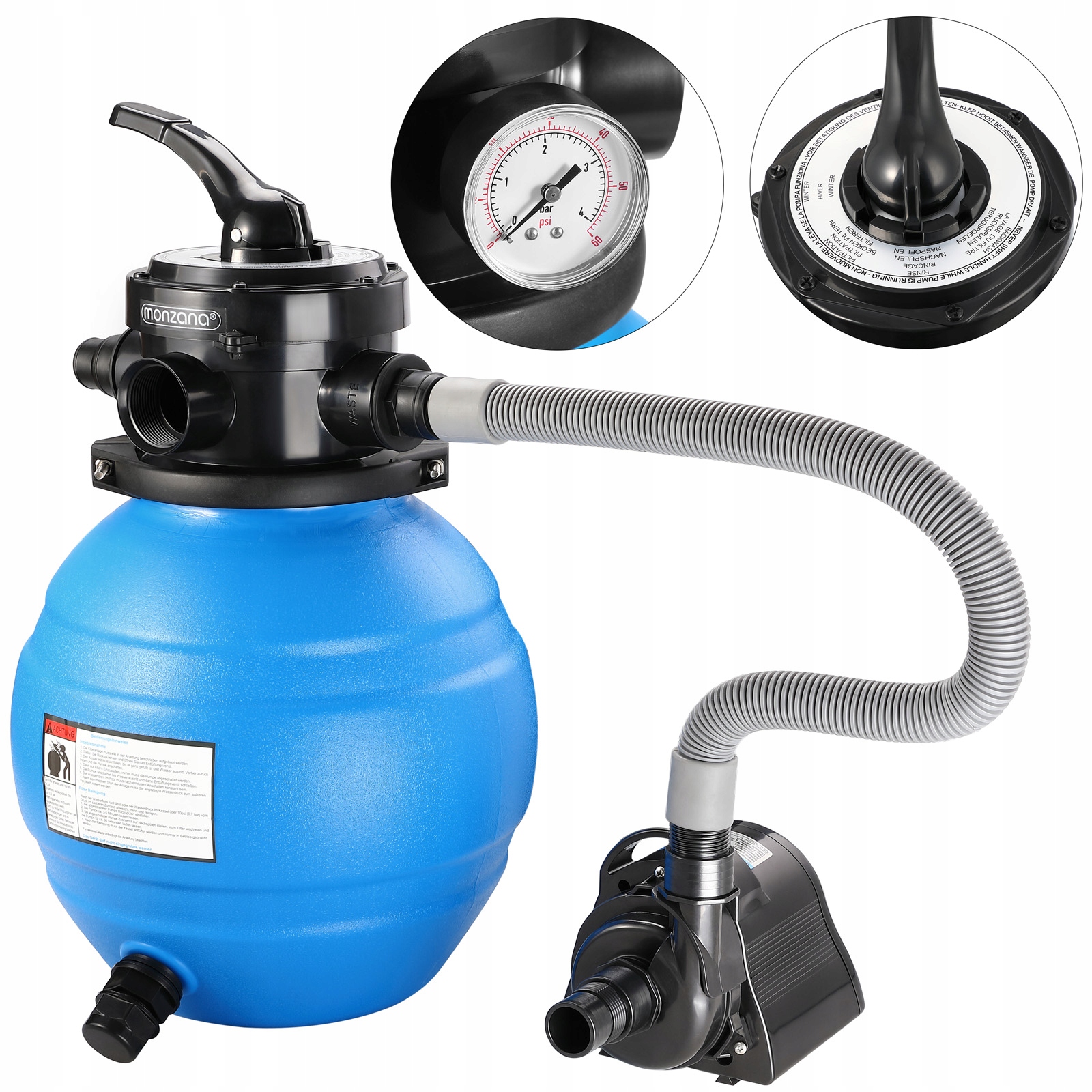 Система піщаного фільтра monzana® MZPP05 оснащена великою кількістю аксесуарів.