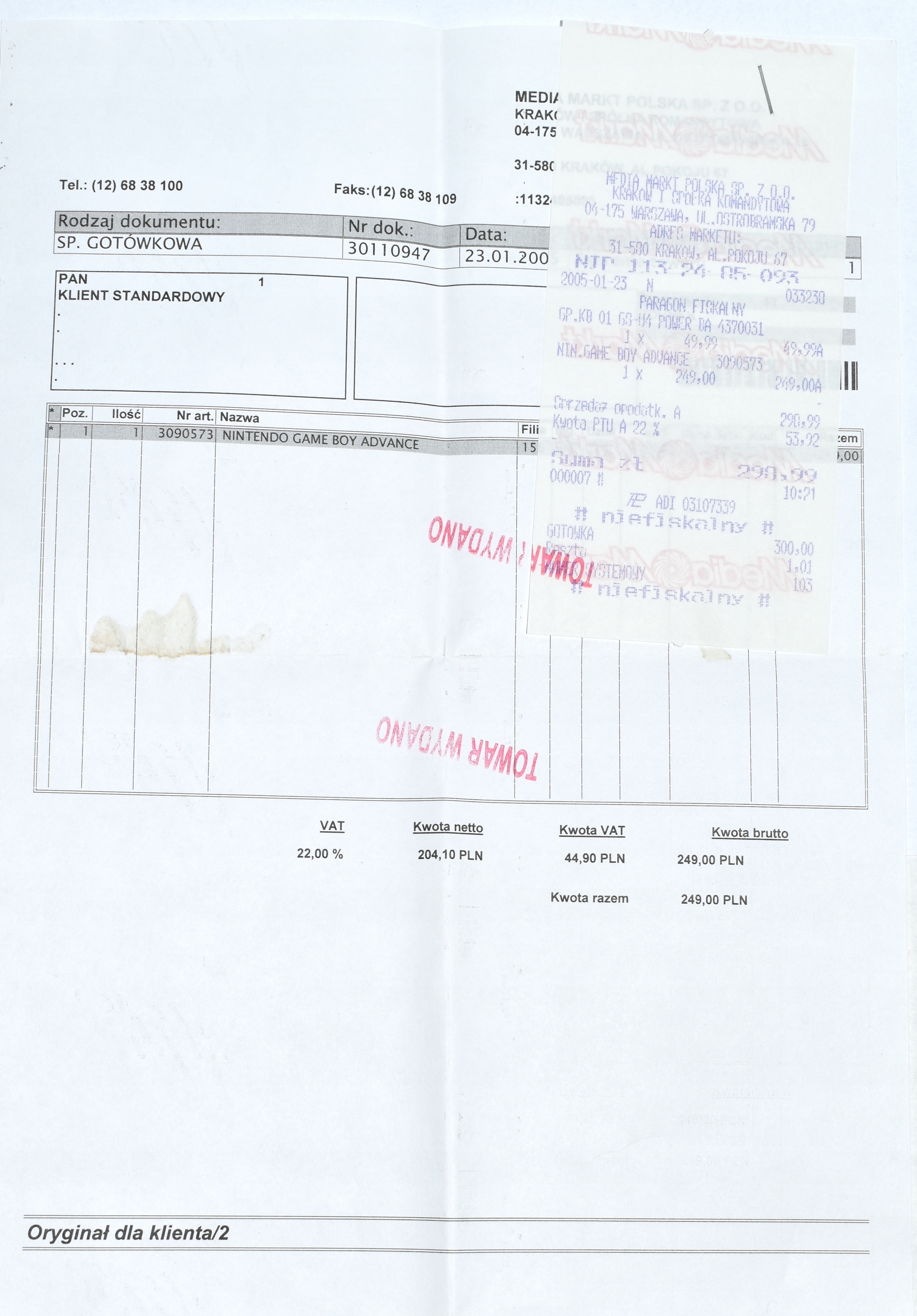 - Рахунок-фактура від Media Markt (дата покупки 23.01.2005)