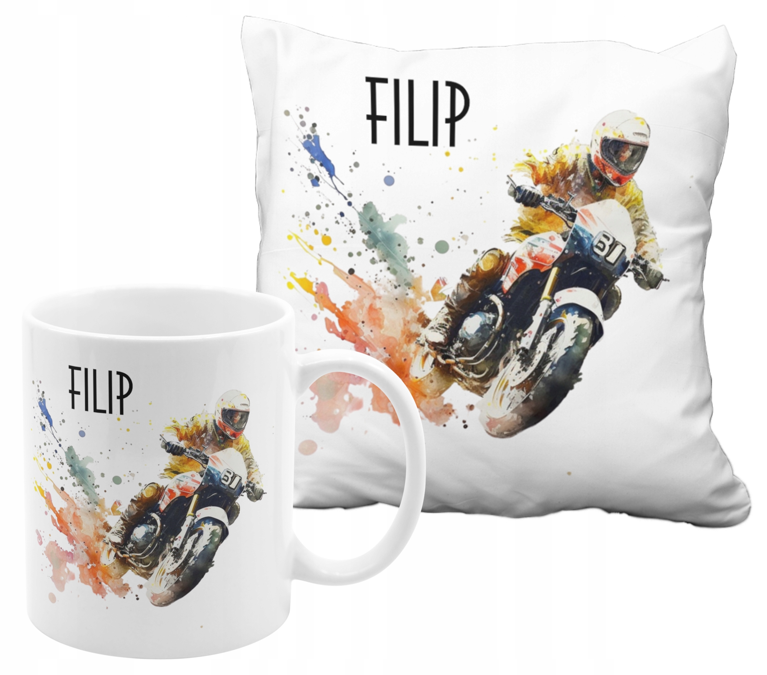 НАБІР ГОНОЧНИЙ МОТОЦИКЛ КРУЖКА ПОДУШКА З ІМ