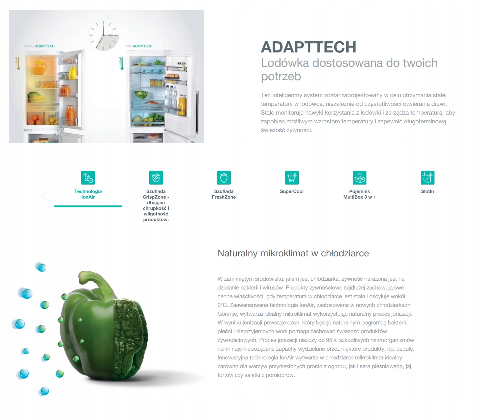 Клас енергоспоживання: E, охолодження AdaptTech: Інтелектуальна система для адаптації та оптимізації роботи холодильника