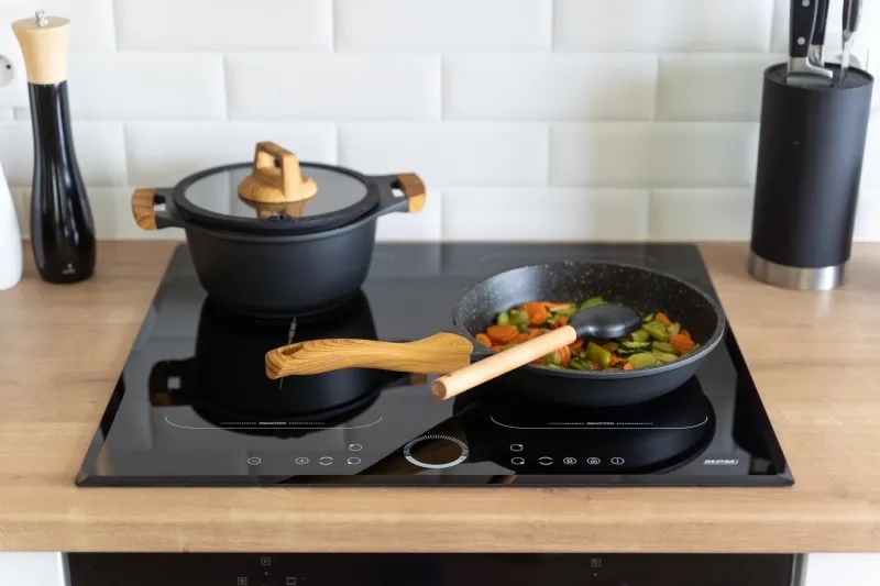 Посуд має антипригарне та міцне покриття, виготовлене за швейцарською технологією ILAG Basic, а товсті стінки та дно рівномірно розподіляють тепло.