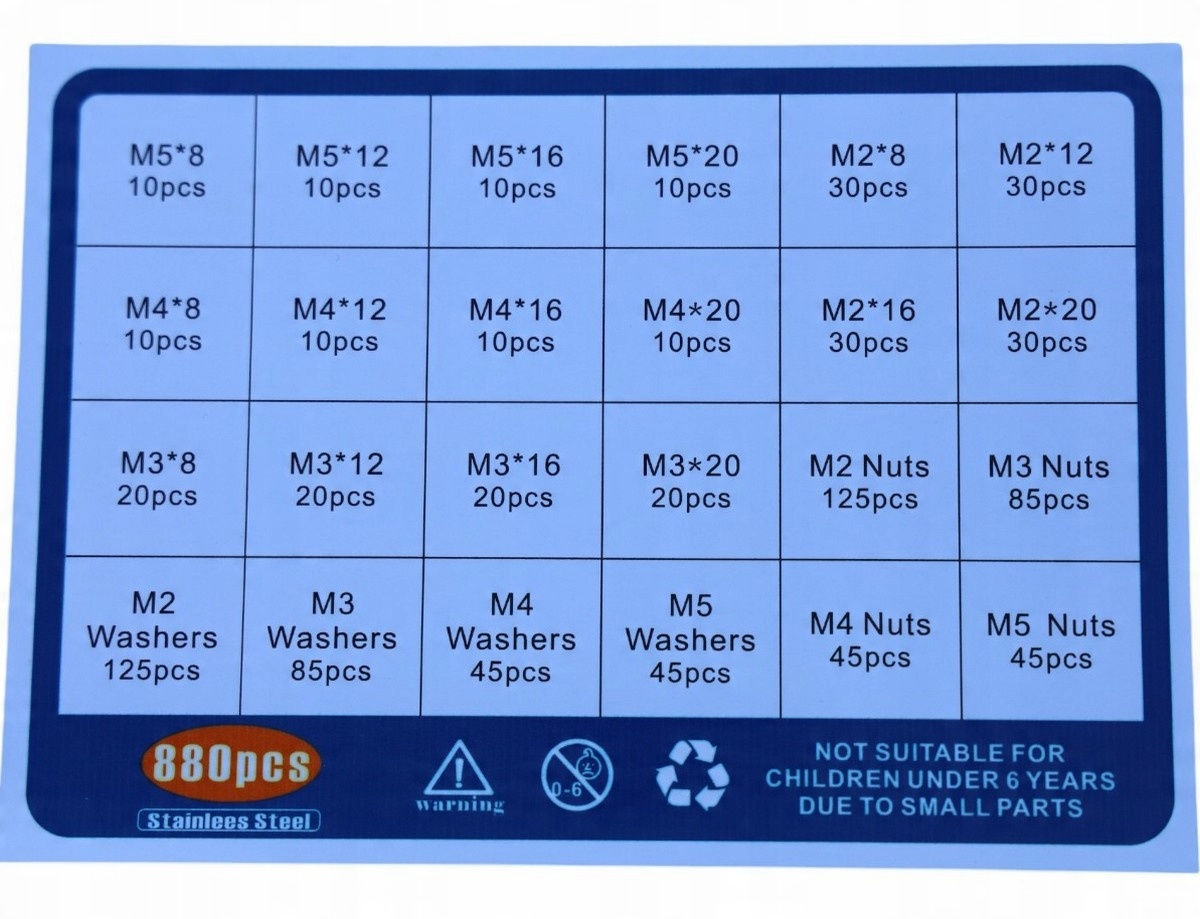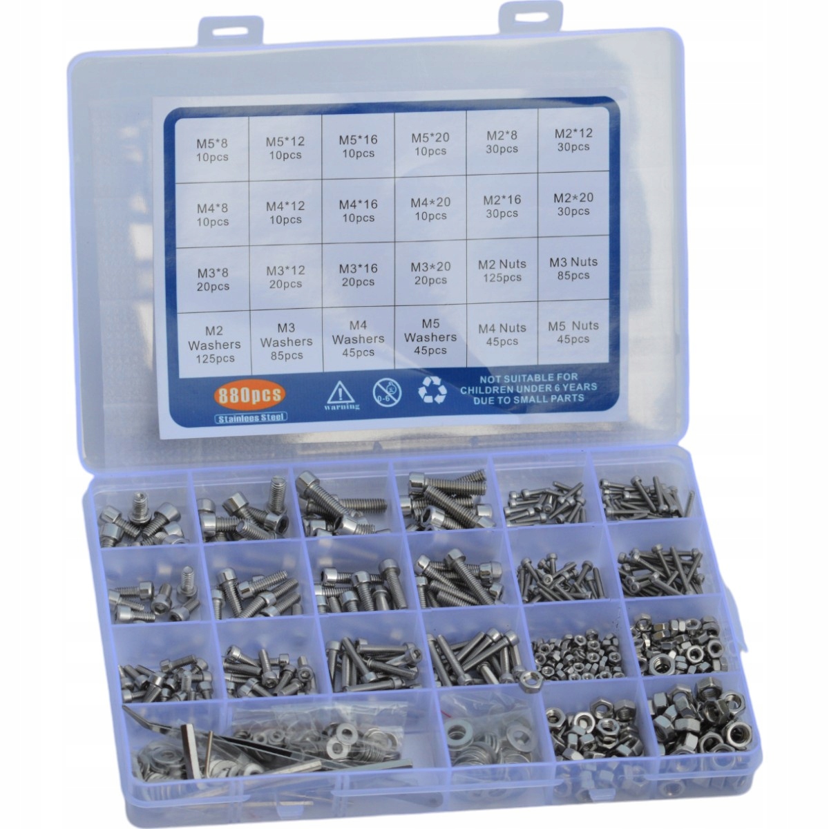 НАБІР ГВИНТІВ ГАЙКА 880 ШТ. ШАЙБИ M2 M3 M4 M5 НАБІР ГВИНТІВ З ШЕСТИГРАННИКОМ