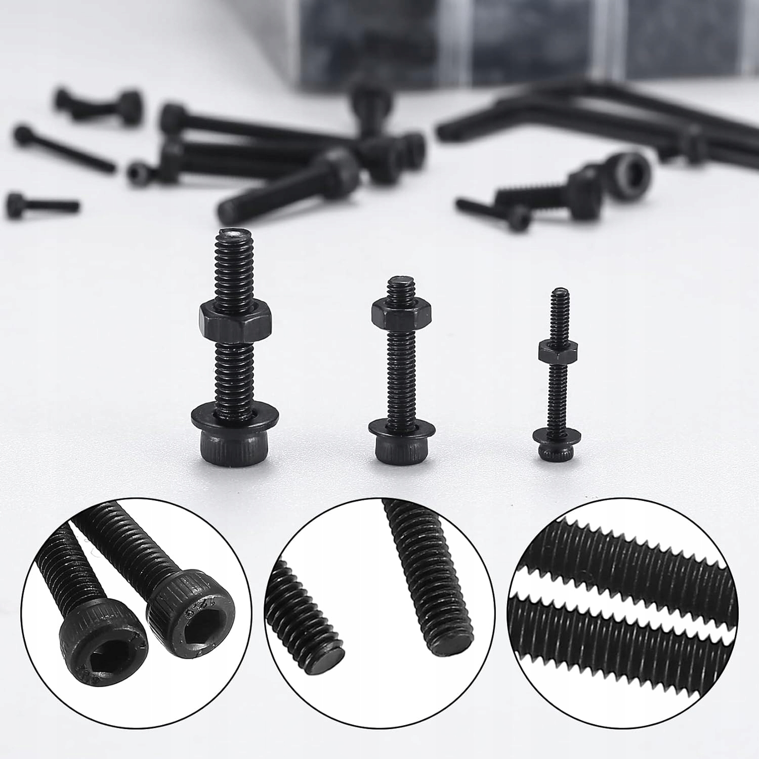 - Усі набори шестигранних гвинтів, гайок і шайб поміщені в практичну коробку для зберігання . Різноманітність розмірів для більшості повсякденних потреб.