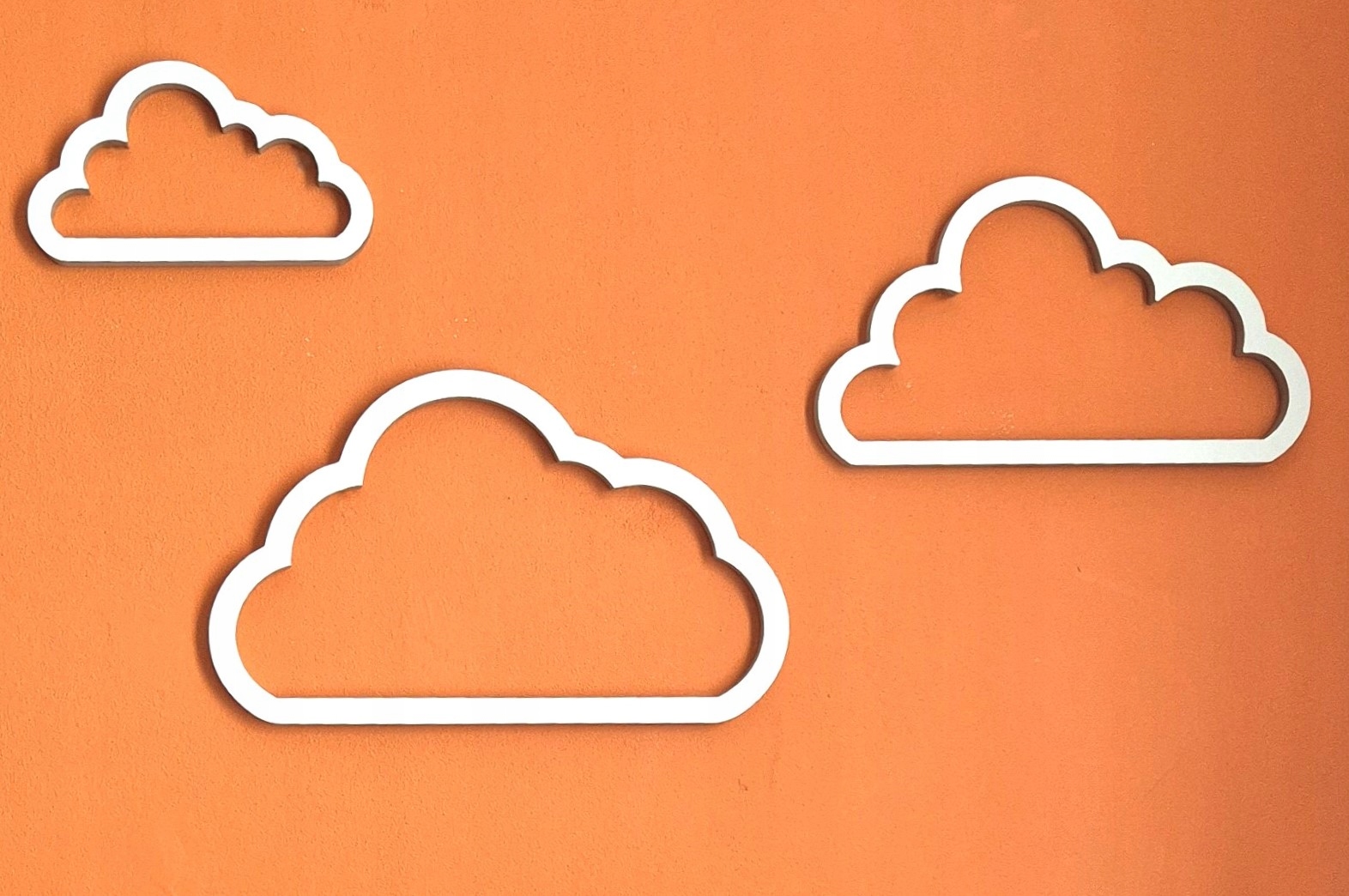 Три розміри хмар виглядають чудово поруч один з одним на стіні. їх стиль і форма розроблені відповідно до результату спостереження за очікуваннями наших клієнтів , і ми маємо значний досвід у цьому, зрештою, статті з хмарним мотивом - це наш кінь.