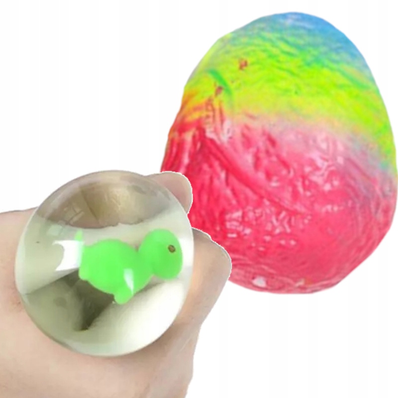 Яйце динозавра GNIOTEK - це іграшка-антистрес, виготовлена з дуже м'якої гуми, яка при роздавлюванні утворює бульбашку з маленьким динозавриком.Сквиші можна стискати, розминати, а потім повертається до попередньої форми.