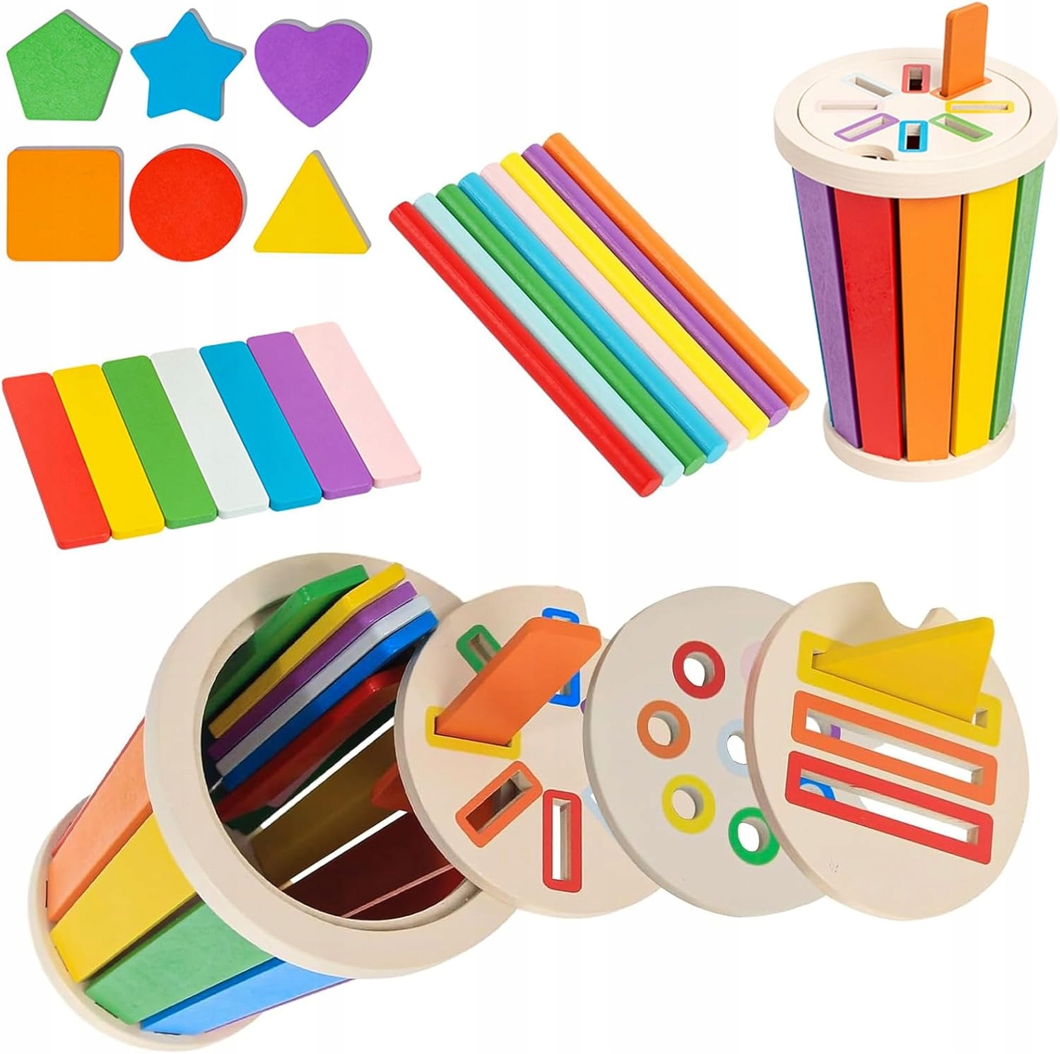 🪀🪀 Більше інформації про класифікацію: Набір для класифікації кольорів Монтессорі включає 6 іграшок різної форми та 6 кольорів та коробку для зберігання.