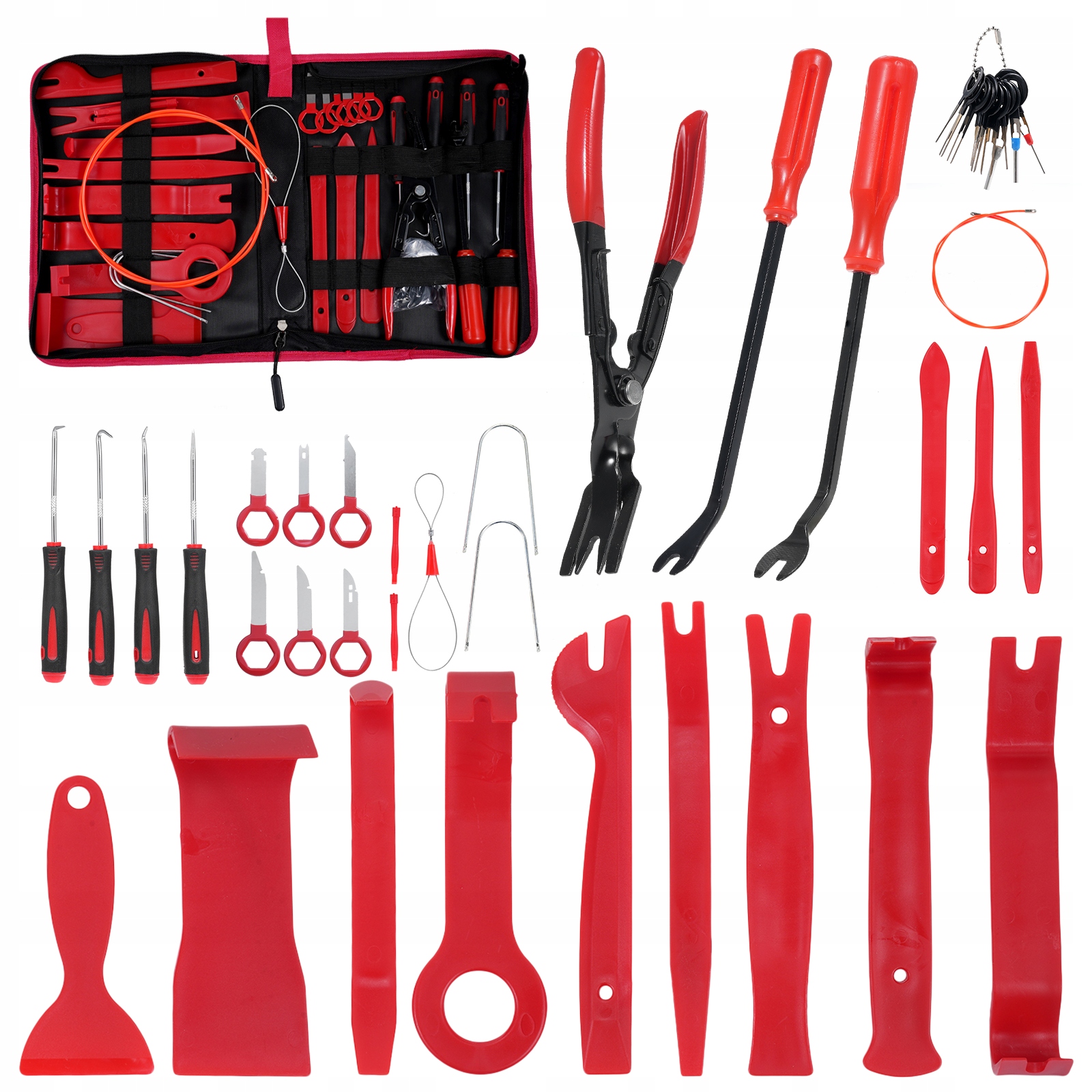 Універсальне використання: набір інструментів для зняття автомобільної оббивки складається з 42 одиниць різних інструментів, які чудово підходять для розбирання та складання автомобіля, включно з автомобільними панелями, віконними молдингами, затискачами, кріпленнями, аудіообладнанням тощо.