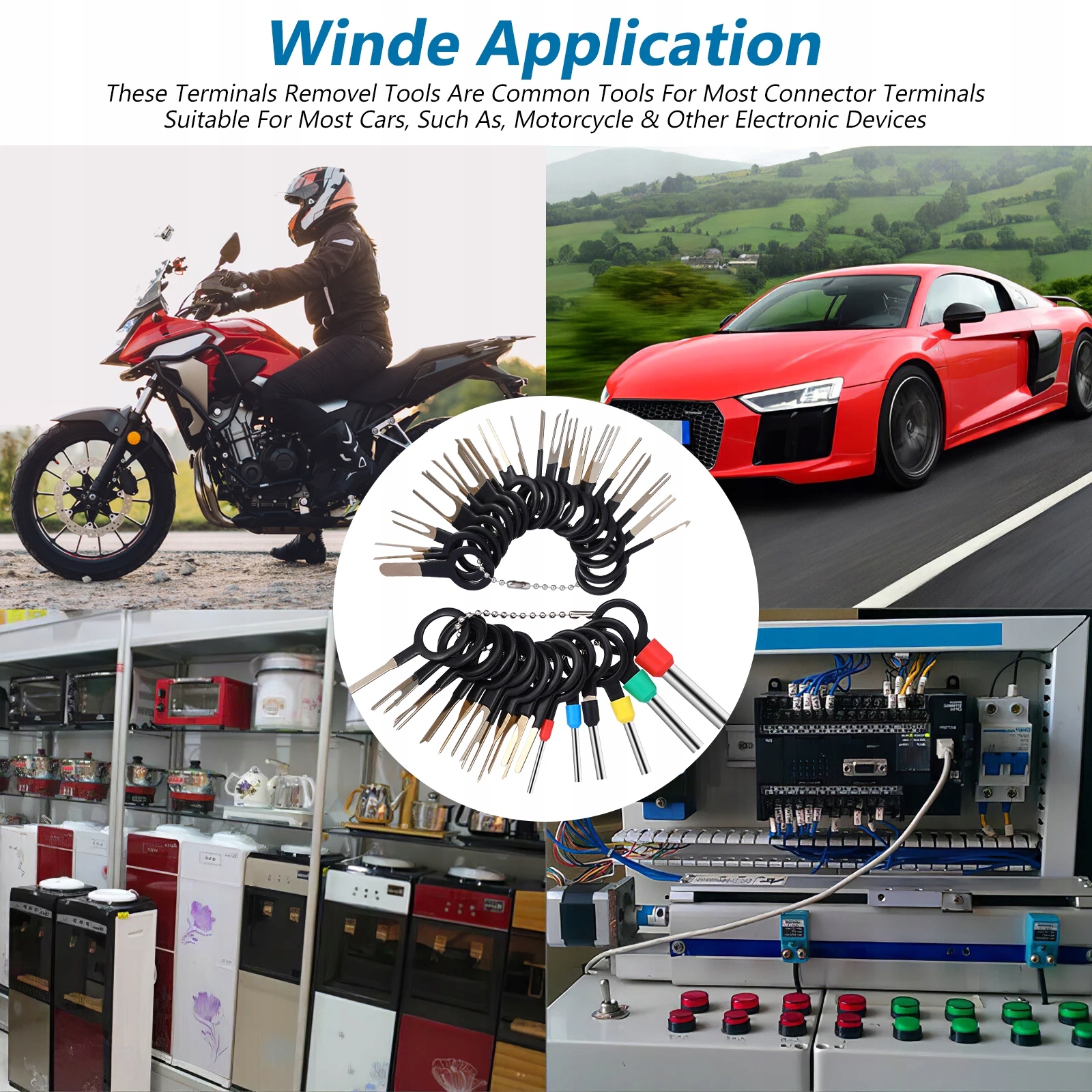 Досі шукаєте професійний і практичний інструмент для видалення терміналу? Наші продукти будуть вашим гарним вибором. Це найзручніший набір інструментів для перевірки та зняття автомобільних проводів, який може швидко класифікувати різні типи автомобільних роз’ємів із проводами між лініями, необхідні для перевірки інструментів для ремонту автомобіля.