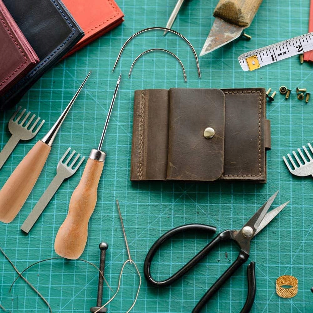 - Кілька швейних голок для шкіри: набір інструментів для шкіри включає кілька голок, у тому числі тупі та гострі голки різної довжини, загострені трикутні голки та вигнуті голки тощо. Вони міцні та гострі, ідеальні для ремонту шкіри чи інших робіт. > li>