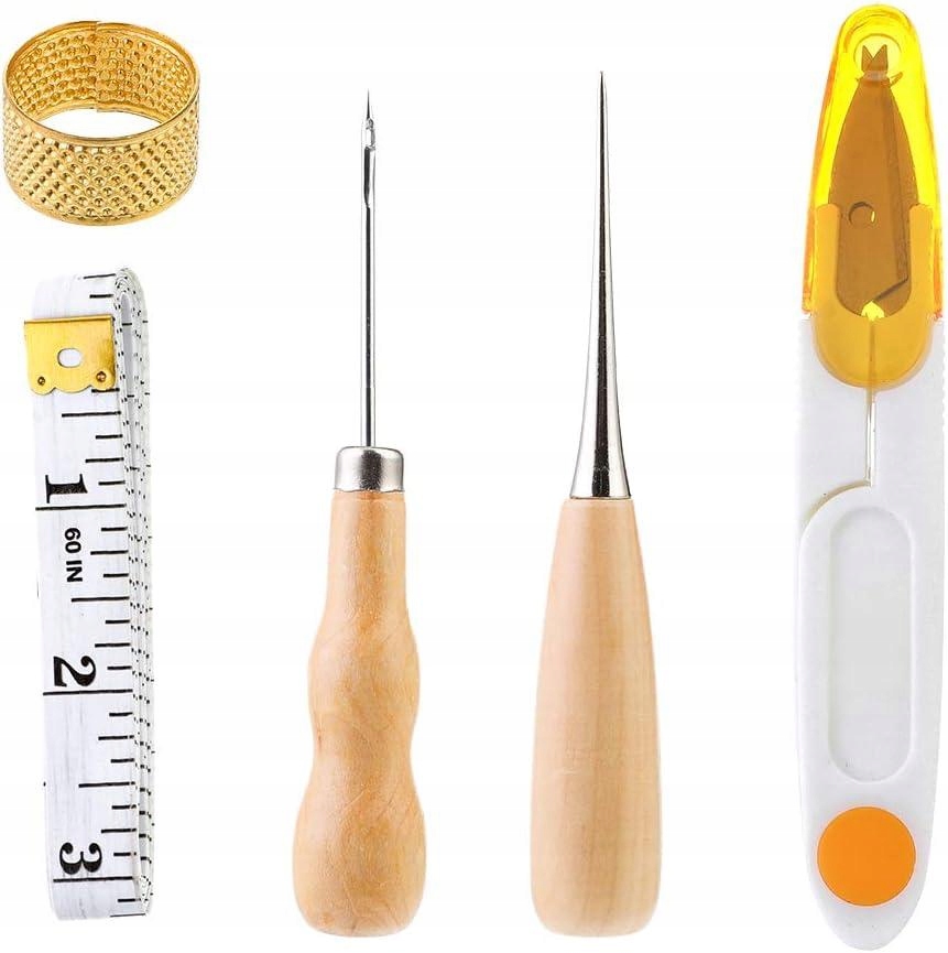 - 【Деталі набору】 9 шкіряних голок, 8 оббивних ниток, 7 шкіряних швейних голок, 1 шило, 1 гачок, 1 мірна стрічка, 1 наперсток для шиття, 1 пряжа для швейних ножиць. Багата суміш для різноманітних потреб.