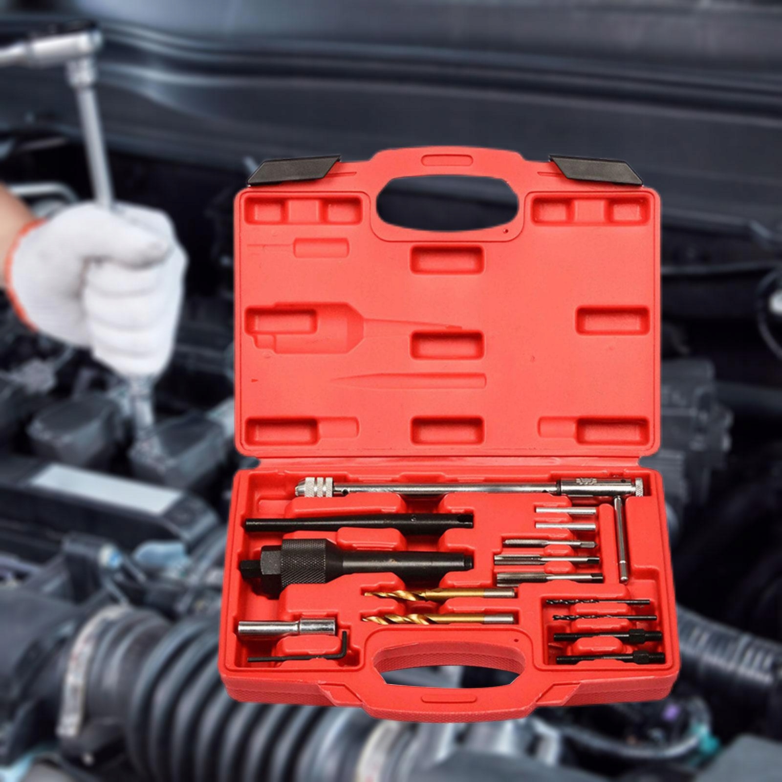 Інструмент для ремонту екстрактора свічок розжарювання, 16 шт. Аксесуар Комплект екстракторів свічок розжарювання, червона коробка