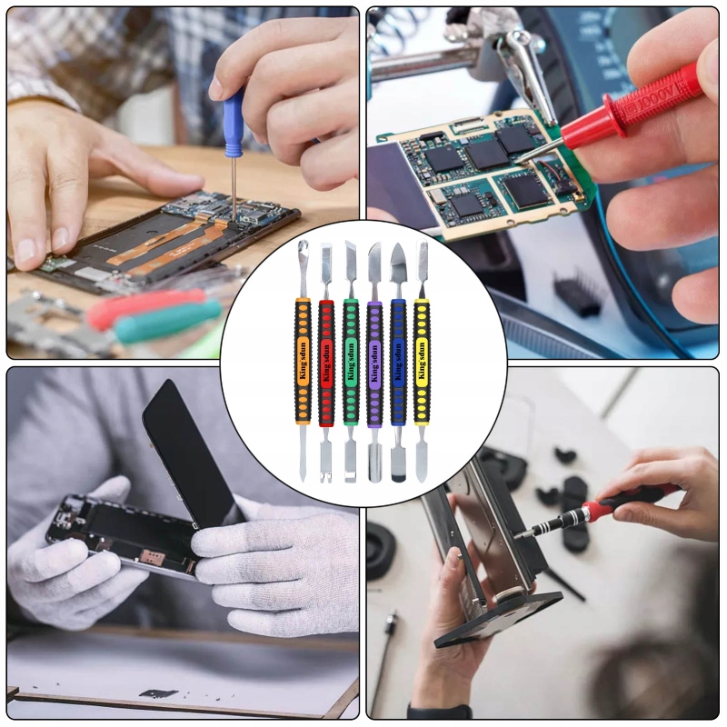 Набір з 6 елементів призначений для ремонту планшетів, електроніки, смартфонів та багато інших. Завдяки їм ви можете безпечно зняти корпус, дисплей або інші елементи пошкодженого пристрою.