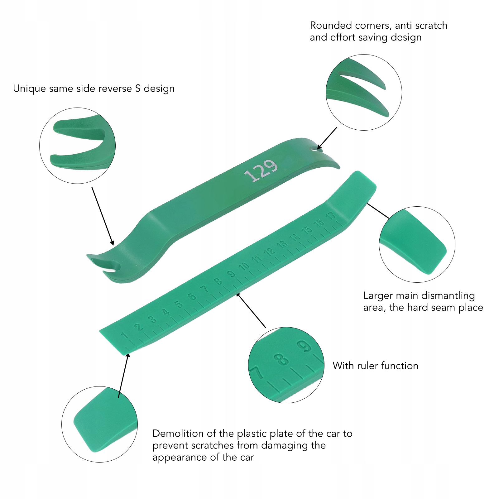 1. Широке застосування: цей набір інструментів для зняття може демонтувати внутрішню панель автомобіля, приладову панель, зону керування аудіоцентром, салон автомобіля тощо.