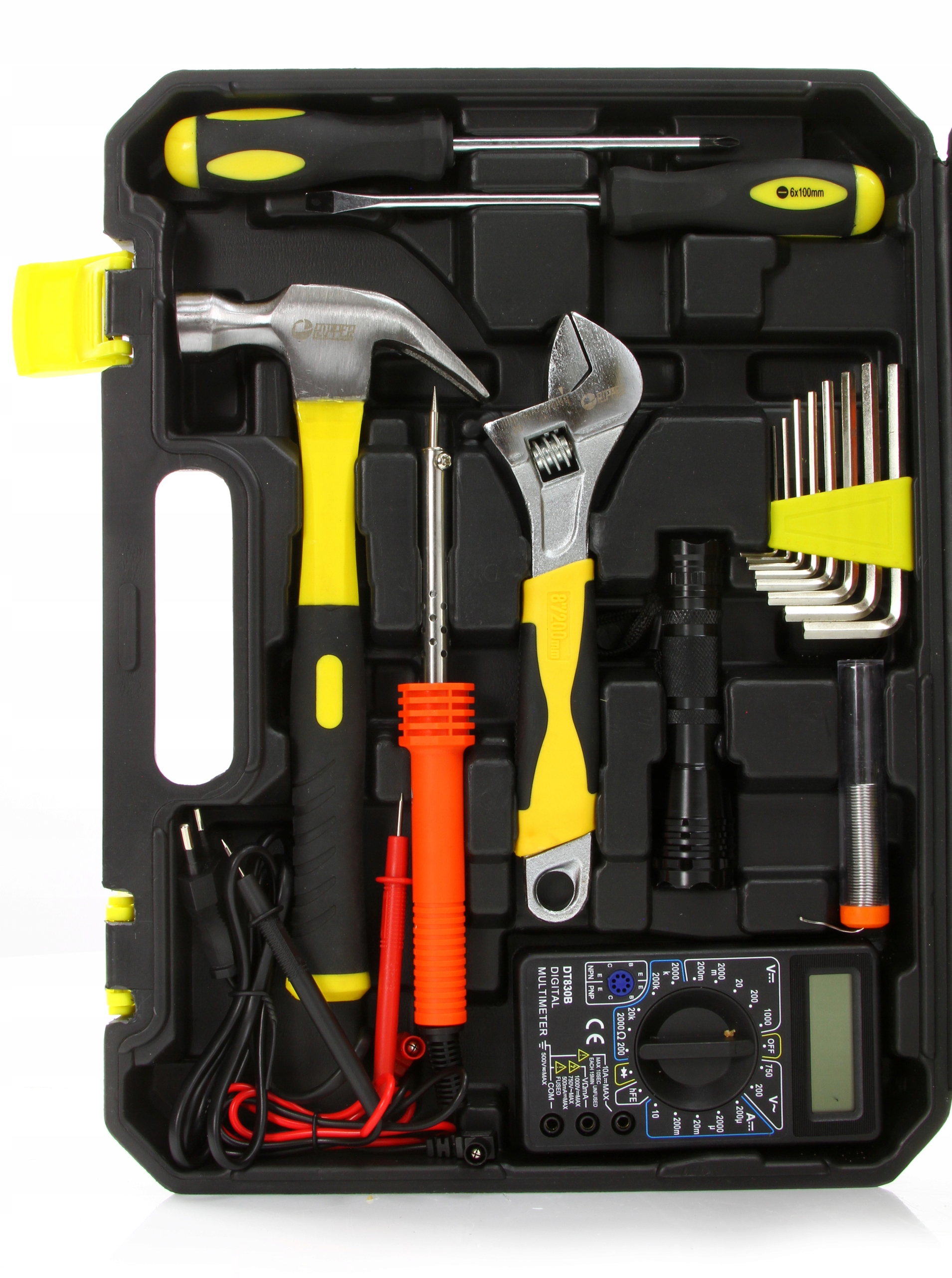 У цій одній зручній валізі кожен електрик і ентузіаст DIY знайде базове обладнання майстерні, якого вистачить для багатьох прості та складні роботи - паяльник, олово, мультиметр, знімач ізоляції - тепер ви знайдете все під рукою!
