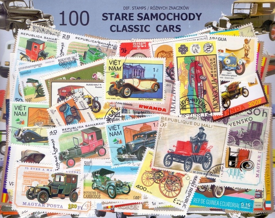 Набір із 100 поштових марок - СТАРІ АВТОМОБІЛИ