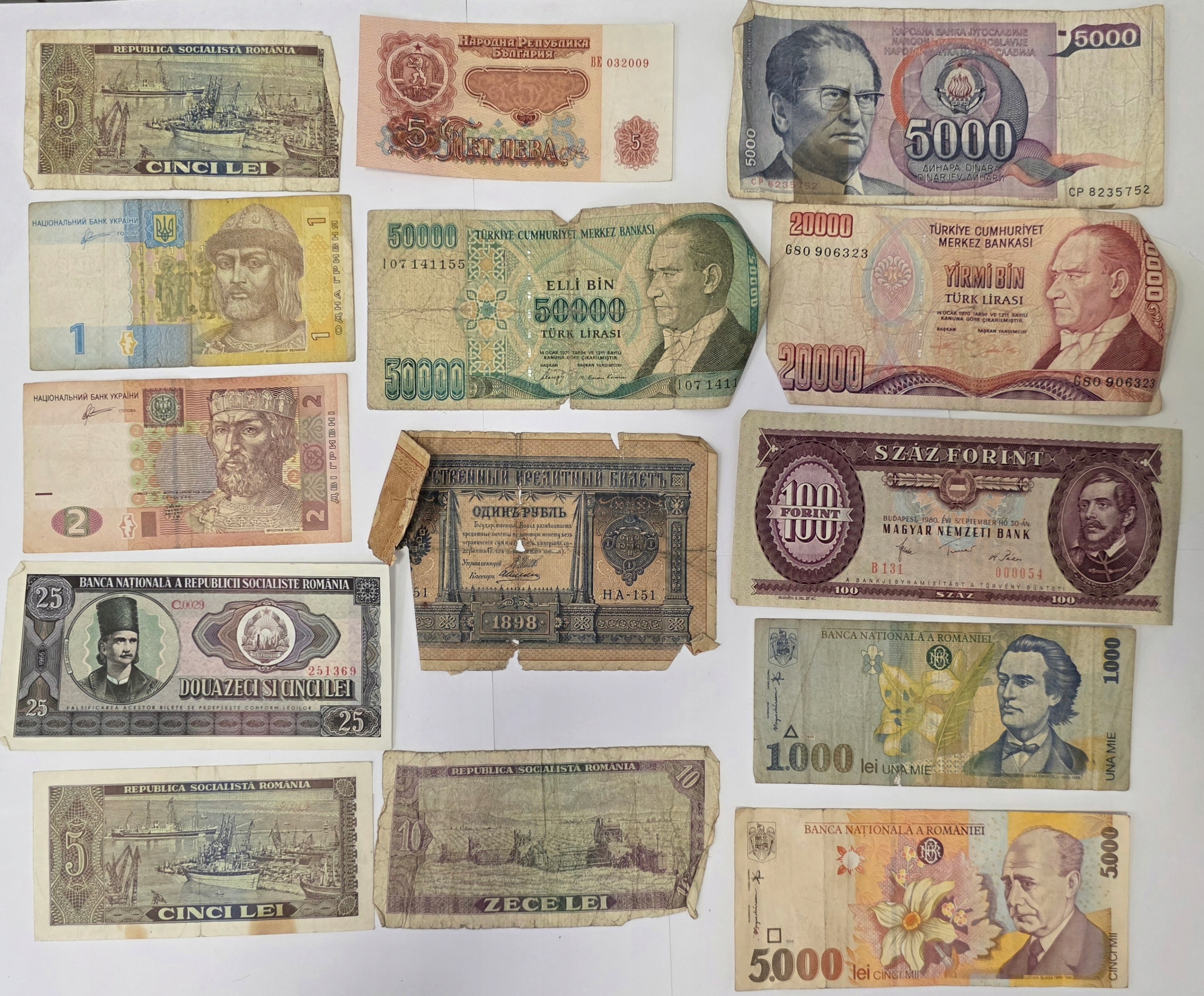Предмет аукціону — це колекція з 14 банкнот із різних країн і періодів, ідеальна для нумізматів, які хочуть урізноманітнити свої колекції. У набір входять банкноти: Румунії (в тому числі часів Соціалістичної Республіки Румунія, номінали (леї)