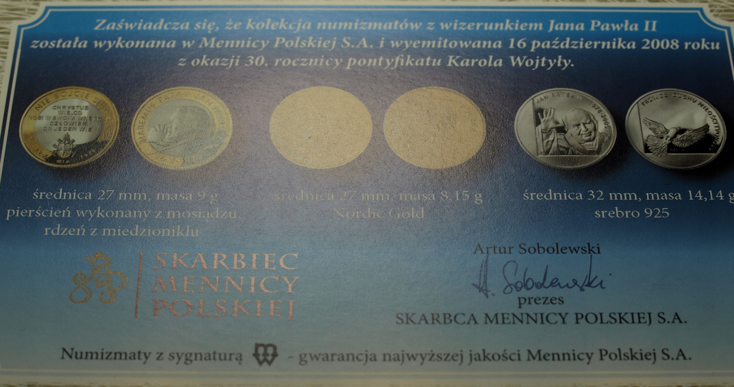 набір із 3 штук монетного двору ІОАННА ПАВЛА II 2008 року, включаючи СРІБЛО