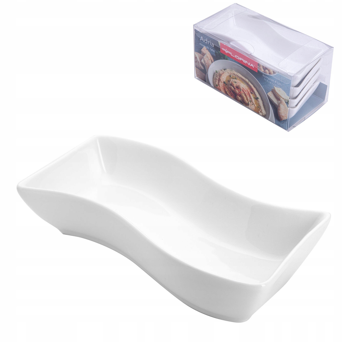 У набір Адріа входять 4 снекові миски розміром 11,5х6х2,5 см. Ідеально підходить для подачі горіхів, начос, сухофруктів тощо. Виготовлені з порцеляни, вони підходять для розігрівання їжі в мікрохвильовій печі. Можна мити в посудомийній машині.