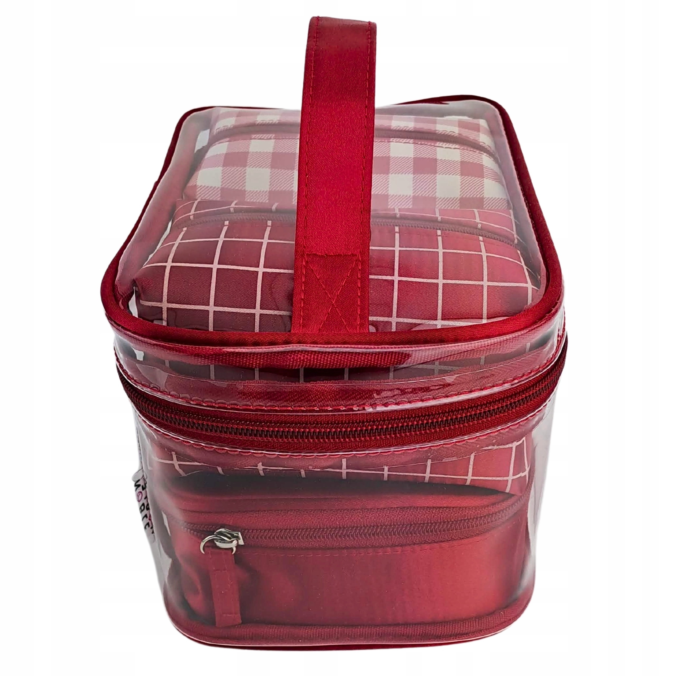 Ця елегантна прозора коробка для косметики є основною частиною унікального набору, який може вмістити три додаткових органайзера. Виготовлена з прозорого матеріалу, вона ідеально підходить для зберігання косметики біля басейну та під час подорожі літаком. Завдяки оправі бордового кольору косметичка виглядає стильно та сучасно. У ній можна зберігати всі три косметички з набору, або використовувати окремо - чудово підходить для мокрих речей. Це незамінний аксесуар для кожної жінки, яка цінує комфорт і функціональність під час подорожей.