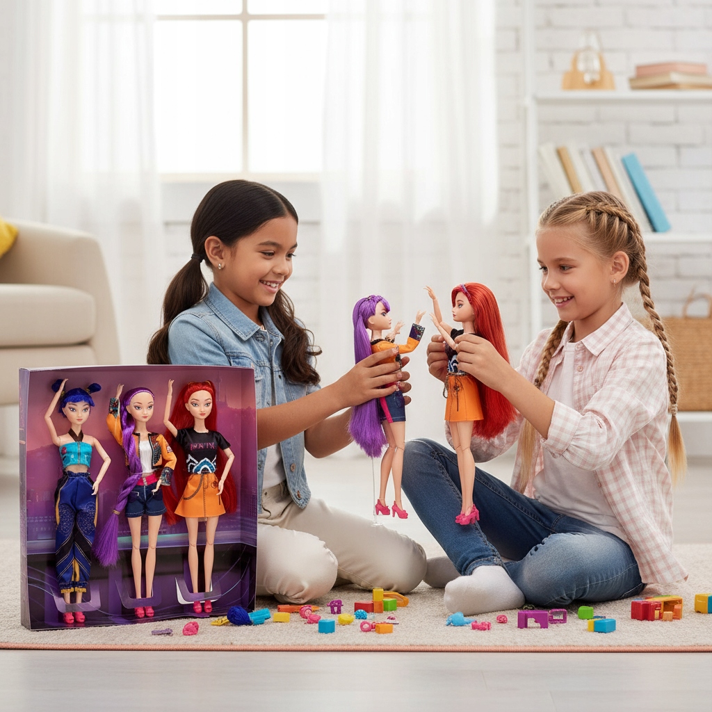 ⭐️Зустрічайте унікальні ляльки, натхненні культурою K-POP – Румі, Міра та Зої! Ці сучасні героїні, упаковані в стильні коробки, вирізняються модним одягом, яскравими кольорами та увагою до кожної деталі. Вони надихають на творчу гру, розвивають уяву та дозволяють пережити захоплюючі пригоди в атмосфері K-POP музики та фентезі.