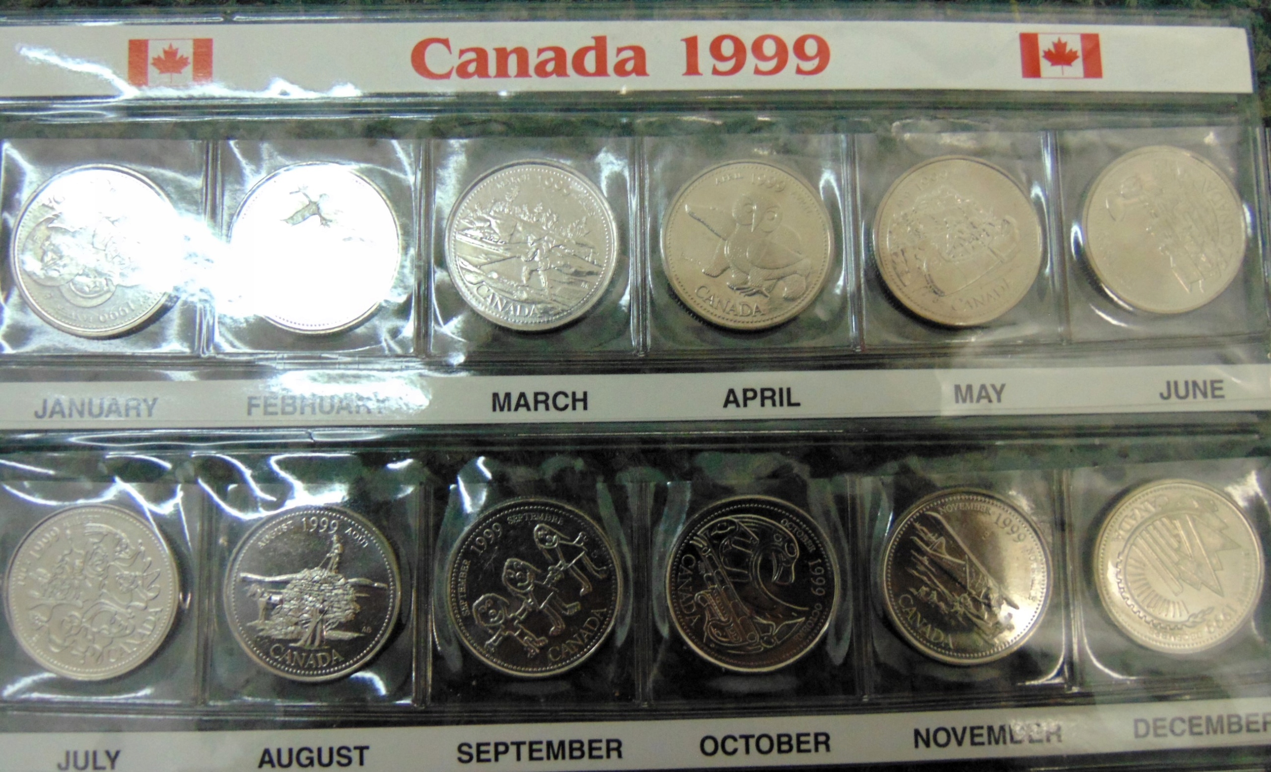 Набір Канада 12x 25 центів 1999 Календар на 12 місяців БЛІСТЕР. ОРИГІНАЛ. ПЕРЕВІРІТЬ ІНШІ АУКЦІОНИ - ЗБИРАЙТЕ РІДКІСНІ ЦІННОСТІ З НУМІЗМАТО!