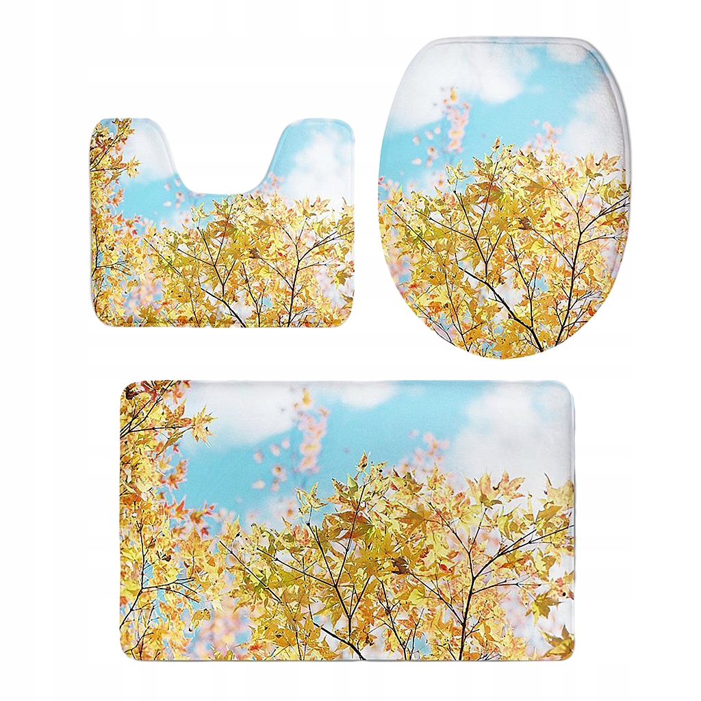 Набір килимків для ванної кімнати Scenery Series, килимок на підставці + кришка, жовте листя №24