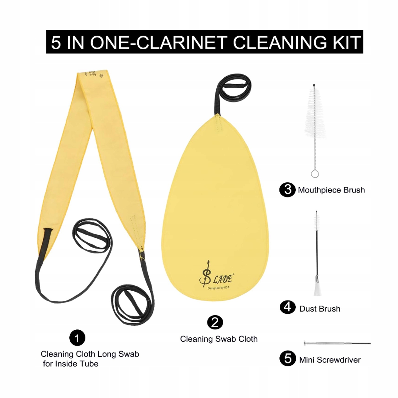1. Комплексне очищення: цей набір для чищення включає різноманітні інструменти та аксесуари для повного очищення вашого кларнета, гарантуючи, що ваш інструмент залишається чистим і гігієнічним.