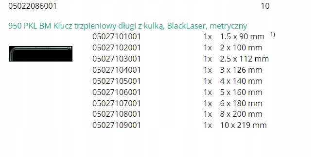 набір високоякісних болтів та гвинтів з шестикутною розеткою у практичній ручці, виготовленій із стійкого для зносу матеріалу, який гарантує певне зчеплення інструментів і в той же час легке видалення. 4 М'яч, розміщений на довгому плечі, дозволяє легко працювати над роботою у доступних місцях складання. клавіші, що піддаються процесу обробки чорної лазерної поверхні, характеризуються відмінним захистом поверхні та високою міцністю . Лазерний гравірований і, таким чином, стійкий до позначення опору R дозволяє швидко отримати доступ до необхідних інструментів.