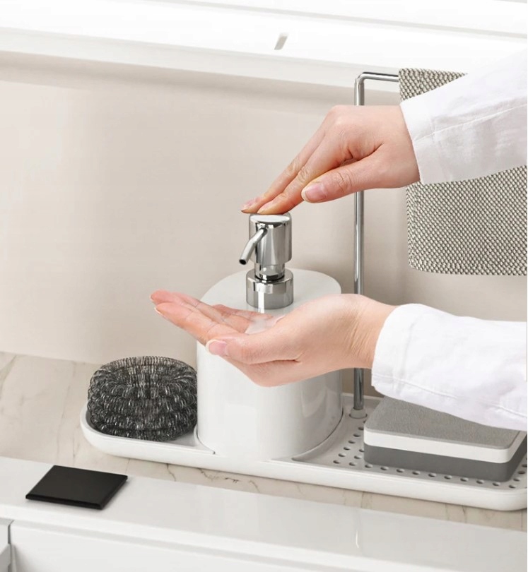 - Додатковий контейнер для мила з інтуїтивно зрозумілим дозатором, вбудованим піддоном для крапель і місцем для дроту.