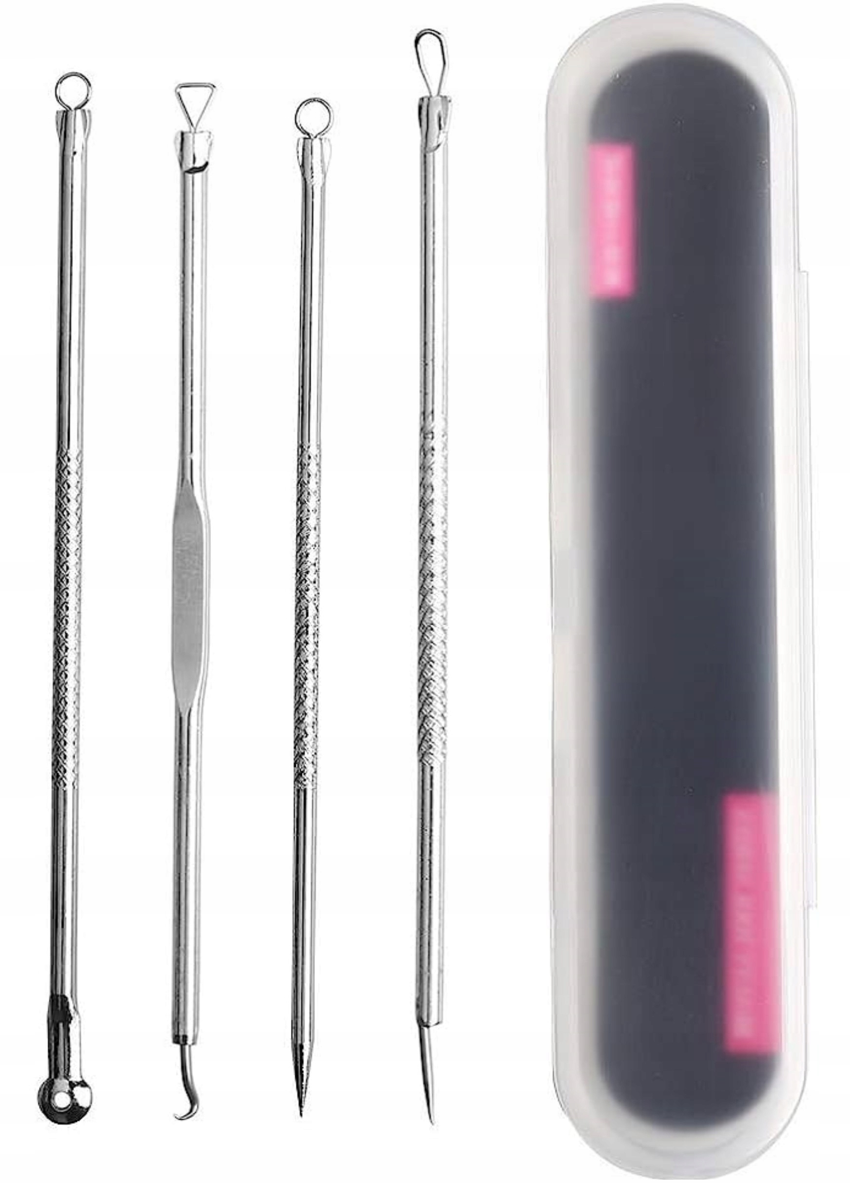 ⭐ Набір з 4 двосторонніх ложок для безпечного видалення чорних крапок, вугрів і прищів.