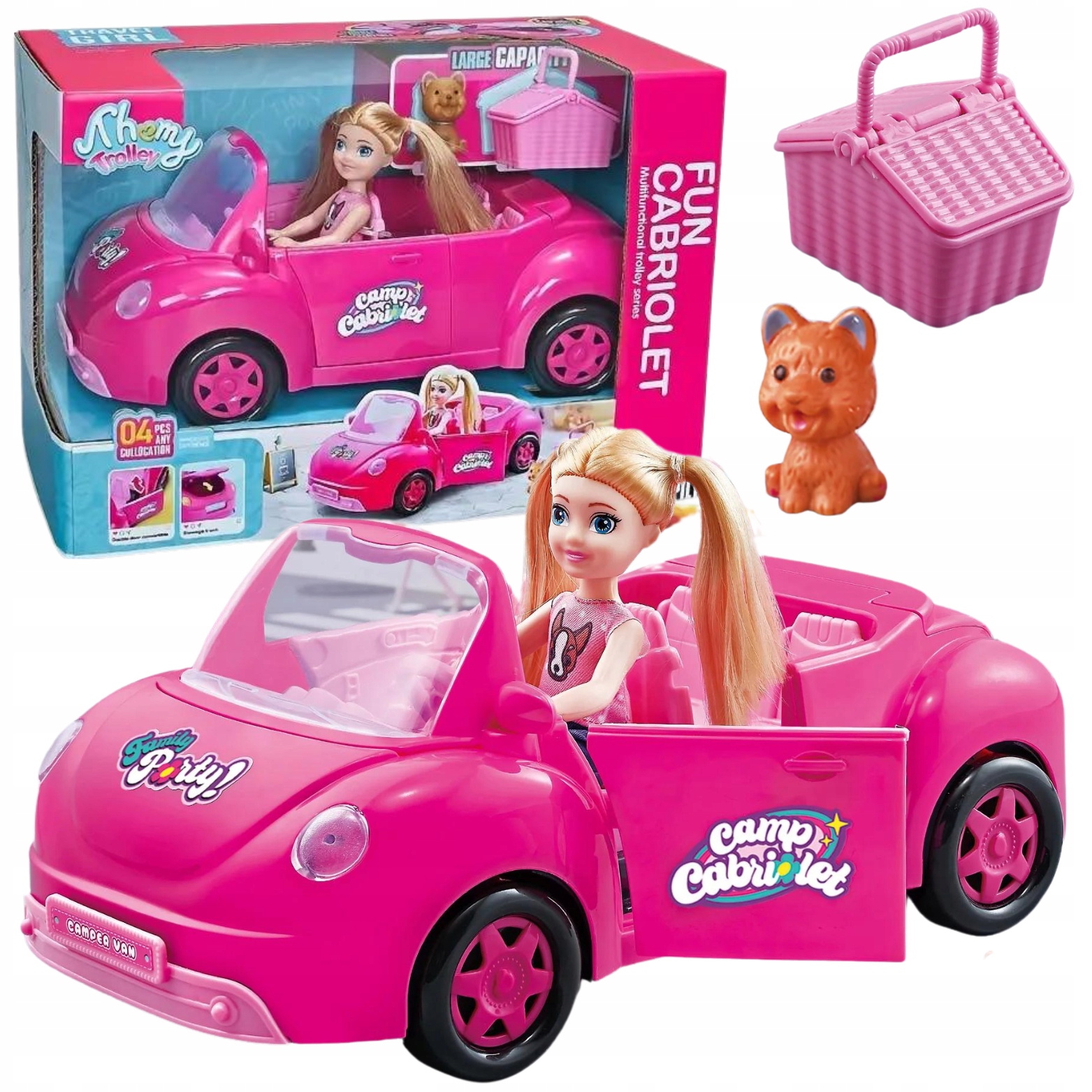НАБІР ЛЯЛЬКА З МАШИНОЮ КОШИК ДЛЯ ПІКНІКА CUTE PUPPY PINK