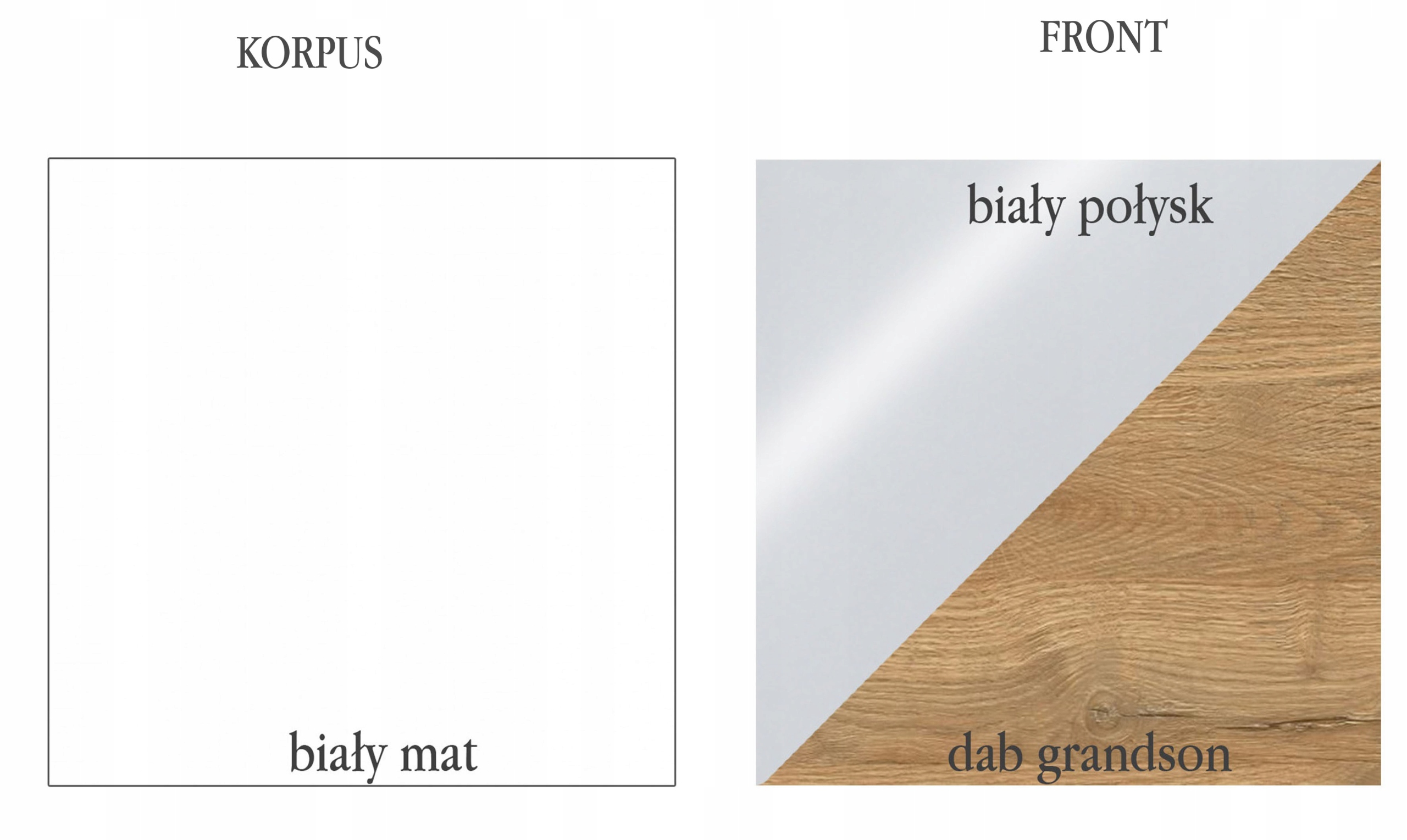 Другий, блискучий білий на фасадах, розбитий контрастним дубовим акцентом. Обидва кольори цієї колекції чудово підійдуть майже до будь-якої композиції.