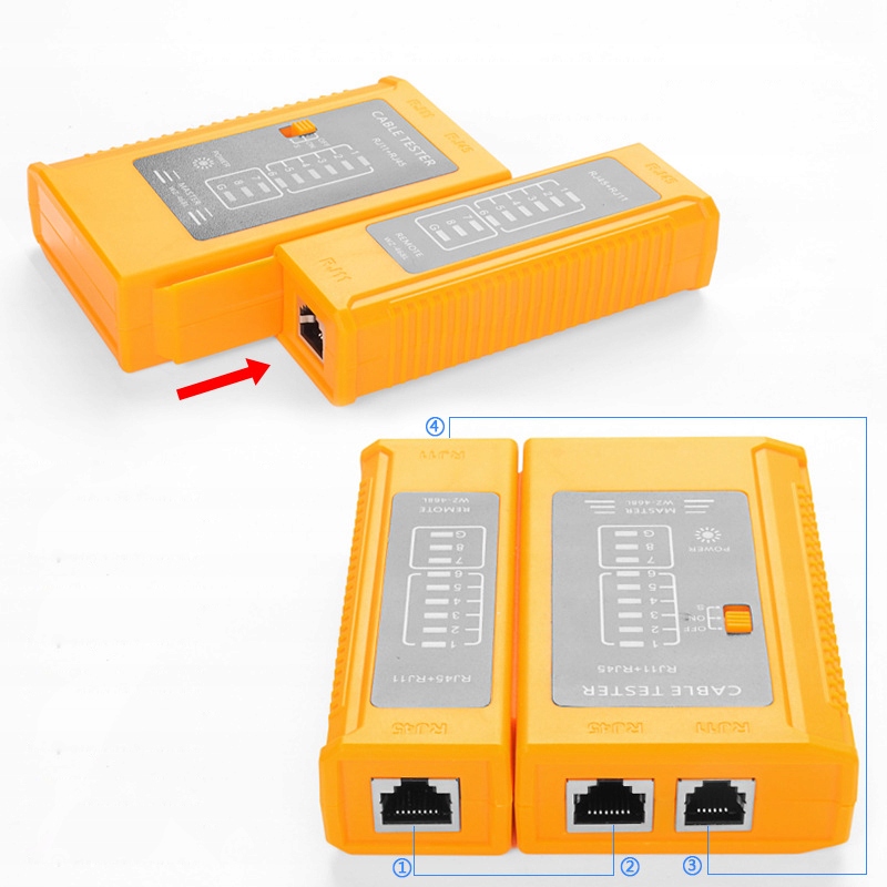 - Обидва порти повинні бути вставлені під час тестування мережевого кабелю/телефонної лінії;