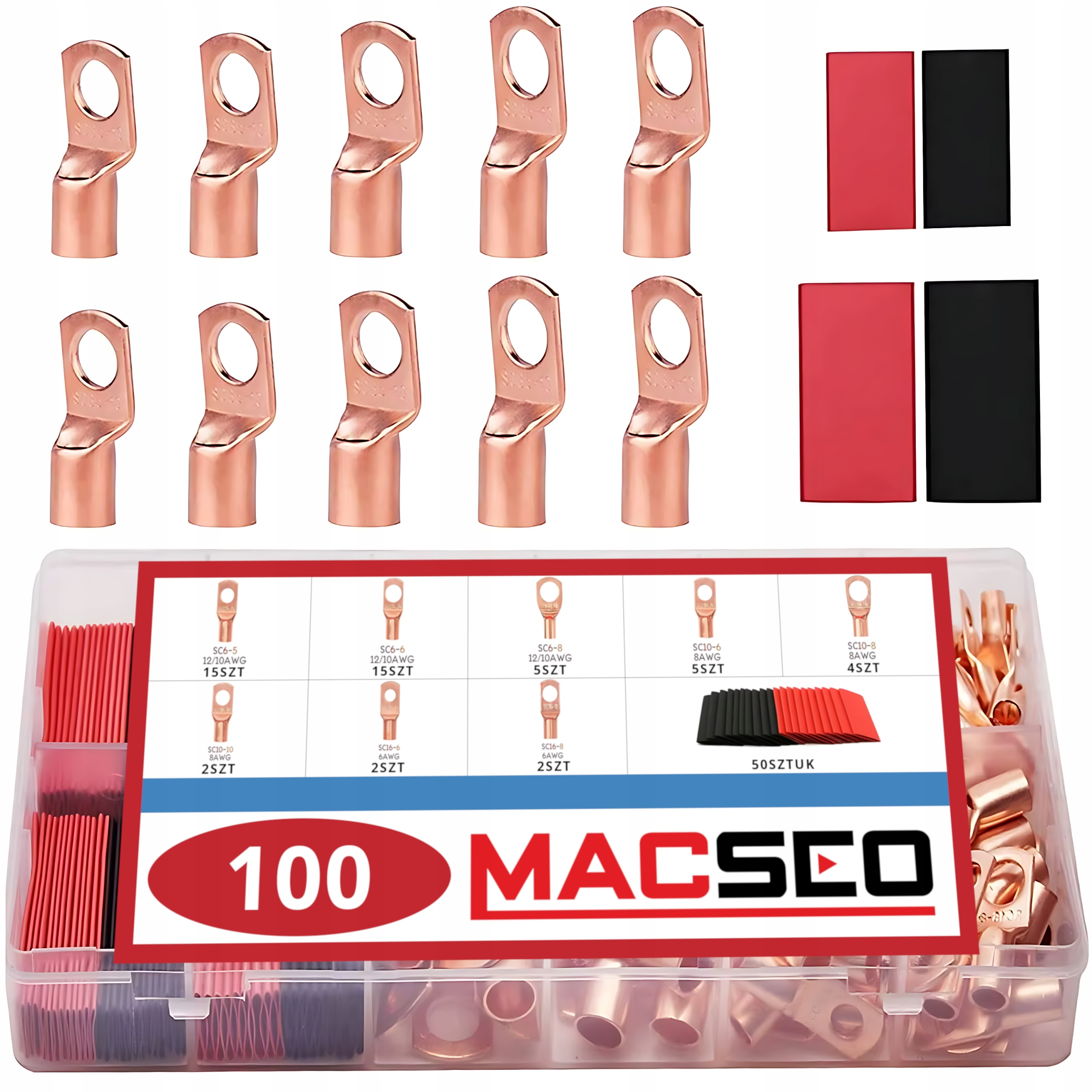 НАБІР МІДНИХ КІЛЬЦЕВИХ КІМНИХ З'ЄДНАНЬ MACSEO_PL 100 ТЕРМОТРУБОК