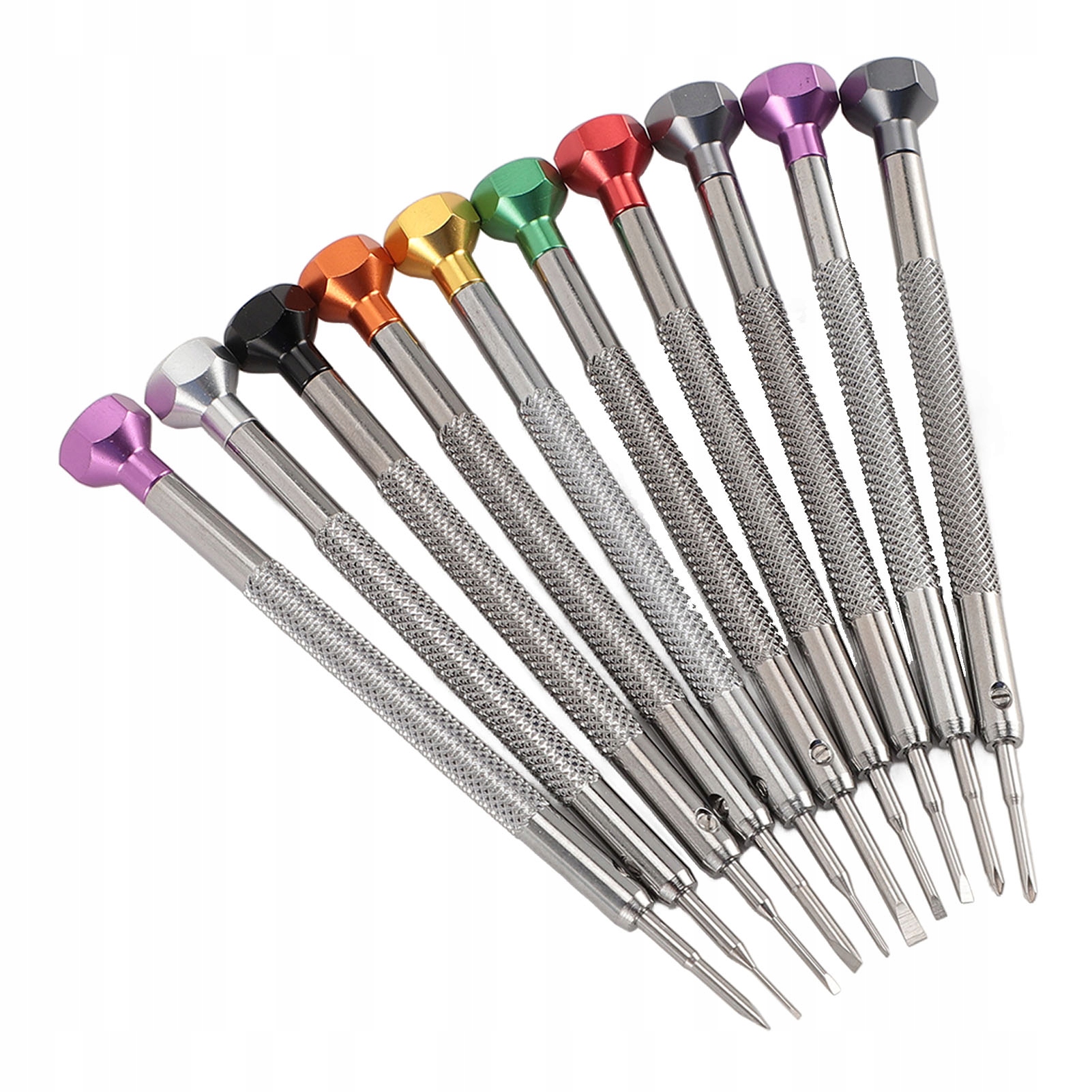 Функція:1. Набір прецизійних викруток: Набір викруток для годинника включає 8 стрічкових викруток і 2 хрестоподібні викрутки. Розміри: 0,6 мм, 0,8 мм, 1,0 мм, 1,2 мм, 1,4 мм, 1,6 мм, 1,8 мм, 2,0 мм для планки та 1,4 мм, 1,6 мм для поперечної планки.