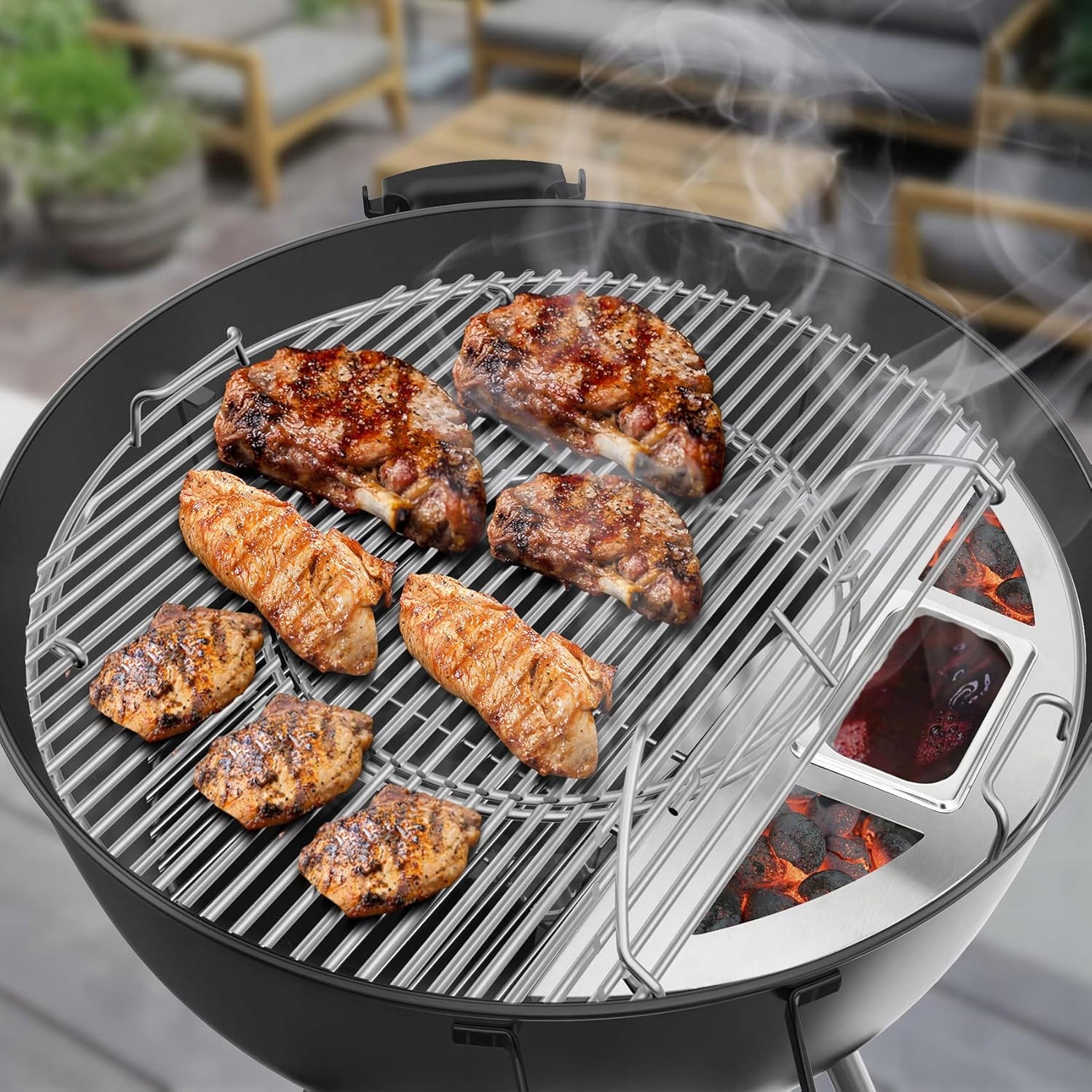 Обираючи коптильню з чашею для води, ви отримуєте високоякісний продукт, створений для любителів грилю. У набір входить міцна конструкція з нержавіючої сталі та ємність для води, яка допомагає підтримувати належний рівень вологи під час копчення. Завдяки цьому ваше м'ясо завжди буде соковитим і насиченим смаком. Коптильня сумісна з більшістю кулькових грилів діаметром до 67 см, що робить її універсальним вибором для будь-якого любителя грилю. Інвестуйте в якість і насолоджуйтеся незабутніми смаками на кожній зустрічі з барбекю.