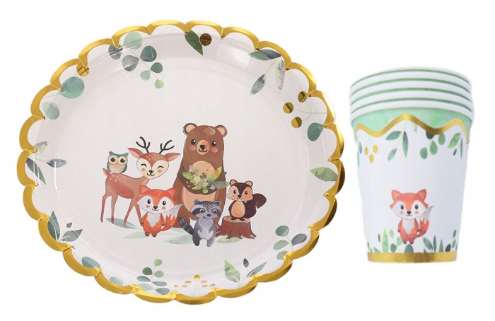 НАБІР НА ДЕНЬ НАРОДЖЕННЯ ГРУЖКИ І ТАРІЛКИ 23 СМ ЛІСОВІ ЗВІРИ