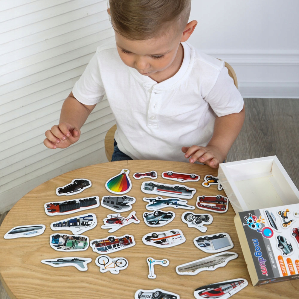 Набір транспортних магніти з реалістичними зображеннями . З набором транспортних магніти, дитина: · p підписує імена найпопулярніших автомобілів ; · Він вчиться визнати їх у реальному житті; · може порівняти та групові магніти . Магніти великі, міцні та зручні для дитячих рук магнітна поверхня, на столі або на підлозі. Зло з магнітами тренує пам’ять та увагу, розвиває рухові навички, мовлення та фантазія.