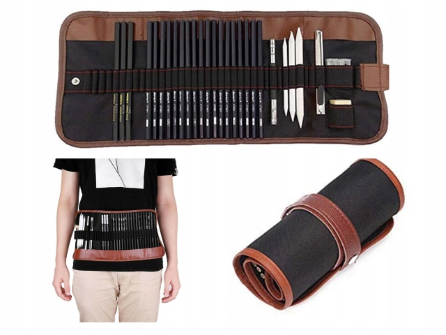 - містить 18 графітних олівців, 3 вугільні олівці та інші аксесуари