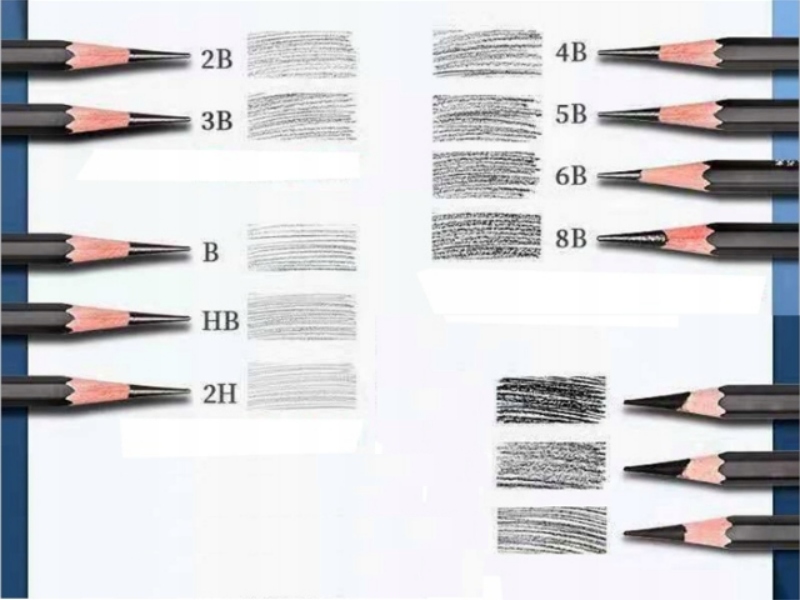 ✅ Олівці одинадцяти різних ступенів твердості від 2H (найтвердіший) до 8B (найм’якший).