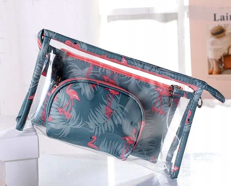 - Набір складається з трьох косметичок, одна прозора і дві тканинні