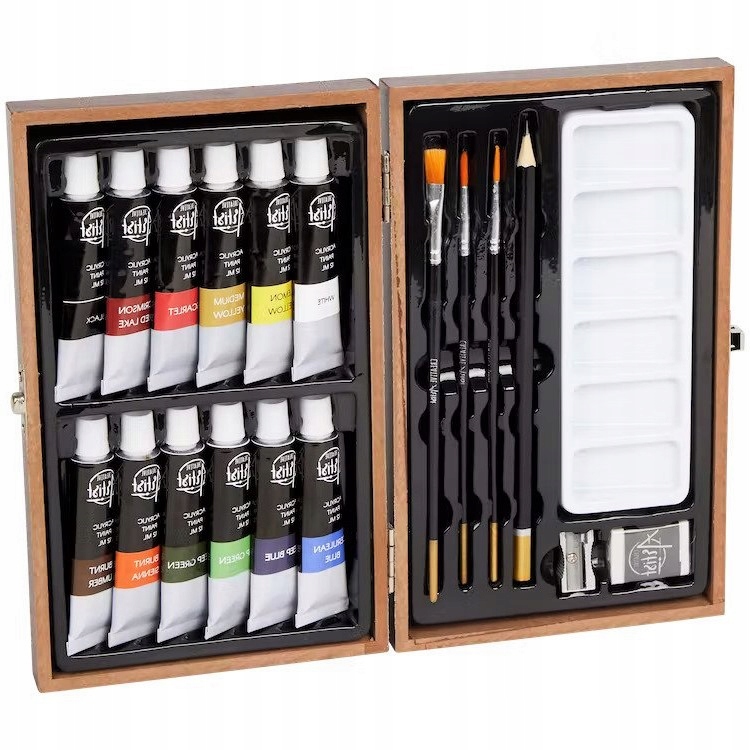 КОРОБКА ДЛЯ АКРИЛОВИХ ФАРБ НАБІР ПЕНЗЛІВ ДЛЯ ОЛІВЦІВ 20 штук